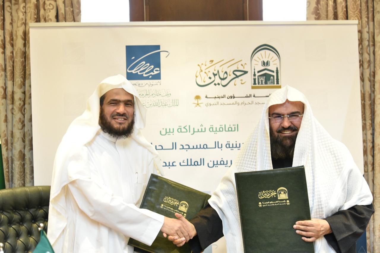 جرى توقيع اتفاقية شراكة بين وقف الملك عبدالله ورئاسة الشؤون الدينية بالمسجد النبوي، بحضور معالي رئيس الشؤون الدينية بالمسجد الحرام والمسجد النبوي الشيخ الأستاذ الدكتور عبدالرحمن بن عبدالعزيز السديس، وسعادة الأمين العام لوقف الملك عبدالله فضيلة الشيخ الدكتور عبدالباري بن عواض الثبيتي.