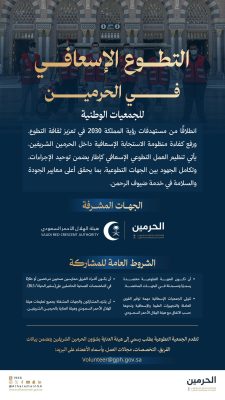وبينت هيئة الحرمين أن الجمعيات الإسعافية المشاركة تتحمل مسؤولية توفير القوى العاملة والتجهيزات الطبية والإسعافية، وفق ما يتم الاتفاق عليه مع هيئة الهلال الأحمر السعودي، بما يضمن جاهزية الفرق الميدانية وفاعلية الاستجابة في مختلف الظروف.