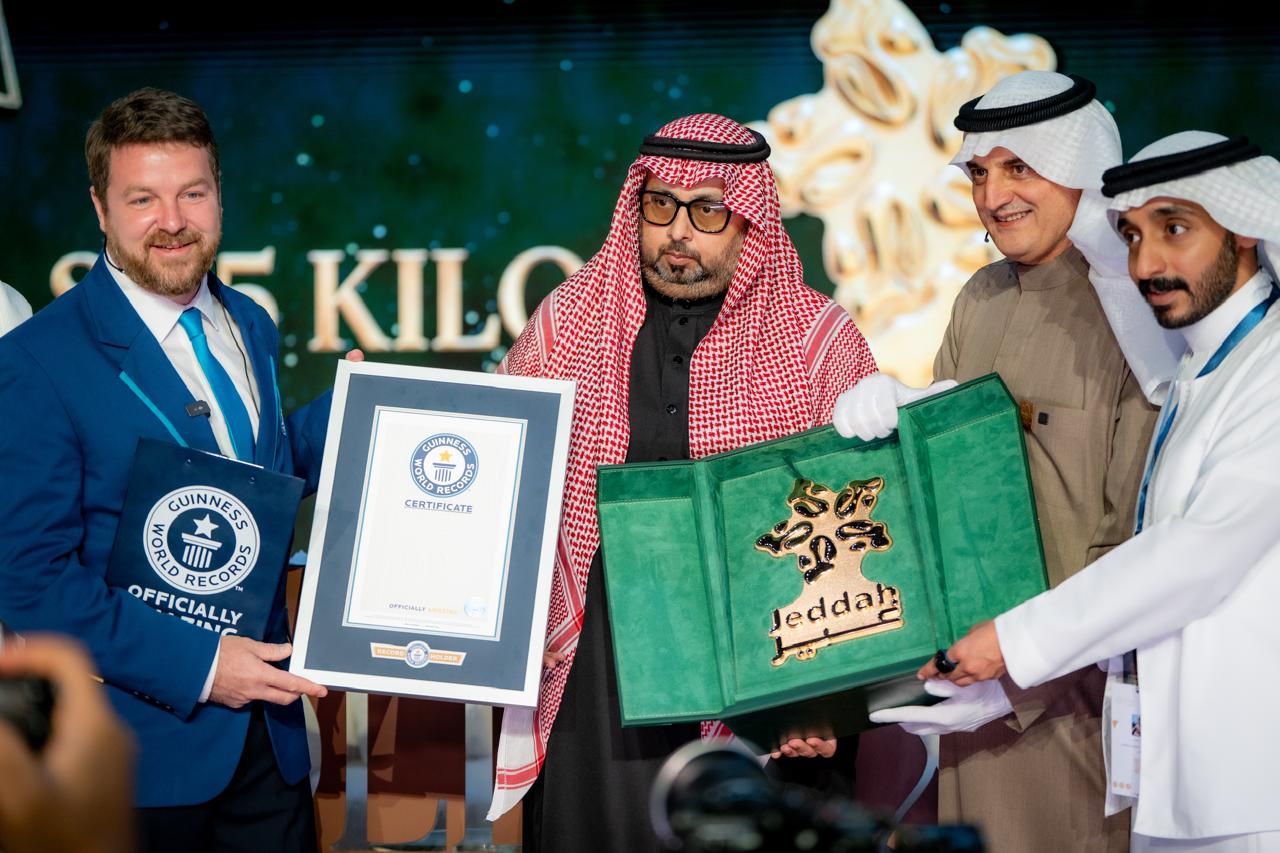 شهدت مدينة جدة إنجازًا نوعيًّا جديدًا يسجل في موسوعة غينيس، من خلال شعار موسم جدة المصنوع بالكامل من الذهب داخل معرض الذهب، كأثقل درع لشعار صنع من الذهب يدخل موسوعة غينيس للأرقام القياسية بوزن 8.769 كيلوجرام.