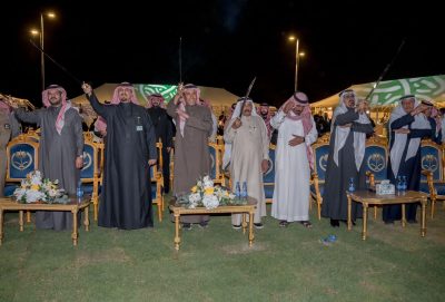 واختُتم الحفل بتقديم أوبريت وطني بمشاركة فرقة عرضة بيشة ، نال استحسان الحضور ، وجسّد الموروث الثقافي للمحافظة في أجواء وطنية مميزة .
