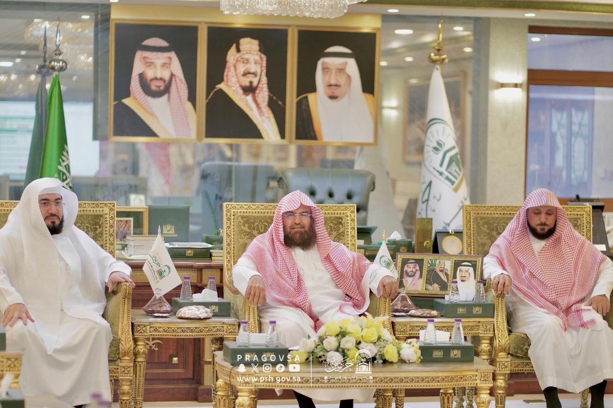 استقبل معالي رئيس الشؤون الدينية بالمسجد الحرام والمسجد النبوي، الشيخ الأستاذ الدكتور عبدالرحمن بن عبدالعزيز السديس، في مكتبه، أئمة وخطباء المسجد الحرام، وحضور أئمة وخطباء المسجد النبوي عبر الاتصال المرئي، في لقاء خُصص لمناقشة سبل تطوير العمل الديني، وتعزيز أثر رسالة الحرمين الشريفين عالميًا، وذلك في إطار الاستعدادات المبكرة لاستقبال شهر رمضان المبارك.
