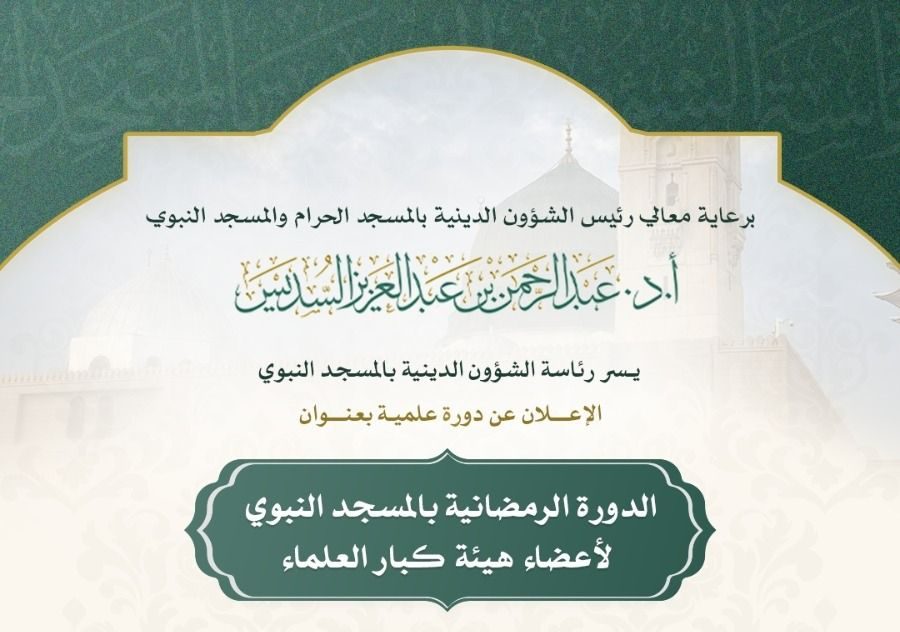 أعلنت رئاسة الشؤون الدينية بالمسجد الحرام والمسجد النبوي عن انطلاق الدورة الرمضانية لأعضاء هيئة كبار العلماء من رحاب المسجد النبوي ابتداءً من الثالث والعشرين من شهر شعبان 1447هـ وتستمر حتى نهاية شهر رمضان المبارك وذلك ضمن حزمة برامجها العلمية والتوعوية الموجهة لقاصدي المسجد النبوي وهادفة إلى تعظيم أثر العلم الشرعي في النفوس وتعزيز الارتباط بالله تعالى