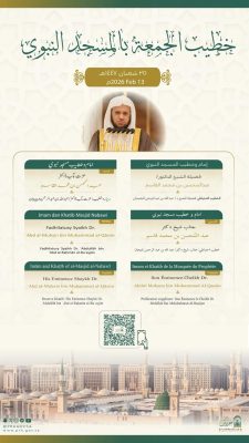 أعلنت رئاسة الشؤون الدينية بالمسجد الحرام والمسجد النبوي، عن أسماء خطيبي وأئمة صلاة الجمعة في الحرمين الشريفين 25 شعبان 1447هـ وذلك ضمن جدولها الدوري لتنظيم الإمامة والخطابة.