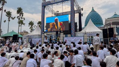في مشهدٍ رمضاني مهيب، تتعانق فيه مآذن الإيمان مع نداء المغرب، وتفترش فيه السكينةُ ساحات الدعاء، احتشد أكثر من (21,500) صائم على موائد برنامج خادم الحرمين الشريفين لتفطير الصائمين الذي تنفذه وزارة الشؤون الإسلامية والدعوة والإرشاد بالمملكة وذلك في الجامع الأكبر بمدينة سورابايا، أحد أكبر الجوامع في إندونيسيا، الذي يتسع لنحو أربعين ألف مصلٍ، في صورةٍ جسدت معاني التكافل الإسلامي بأبهى تجلياته.