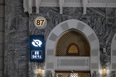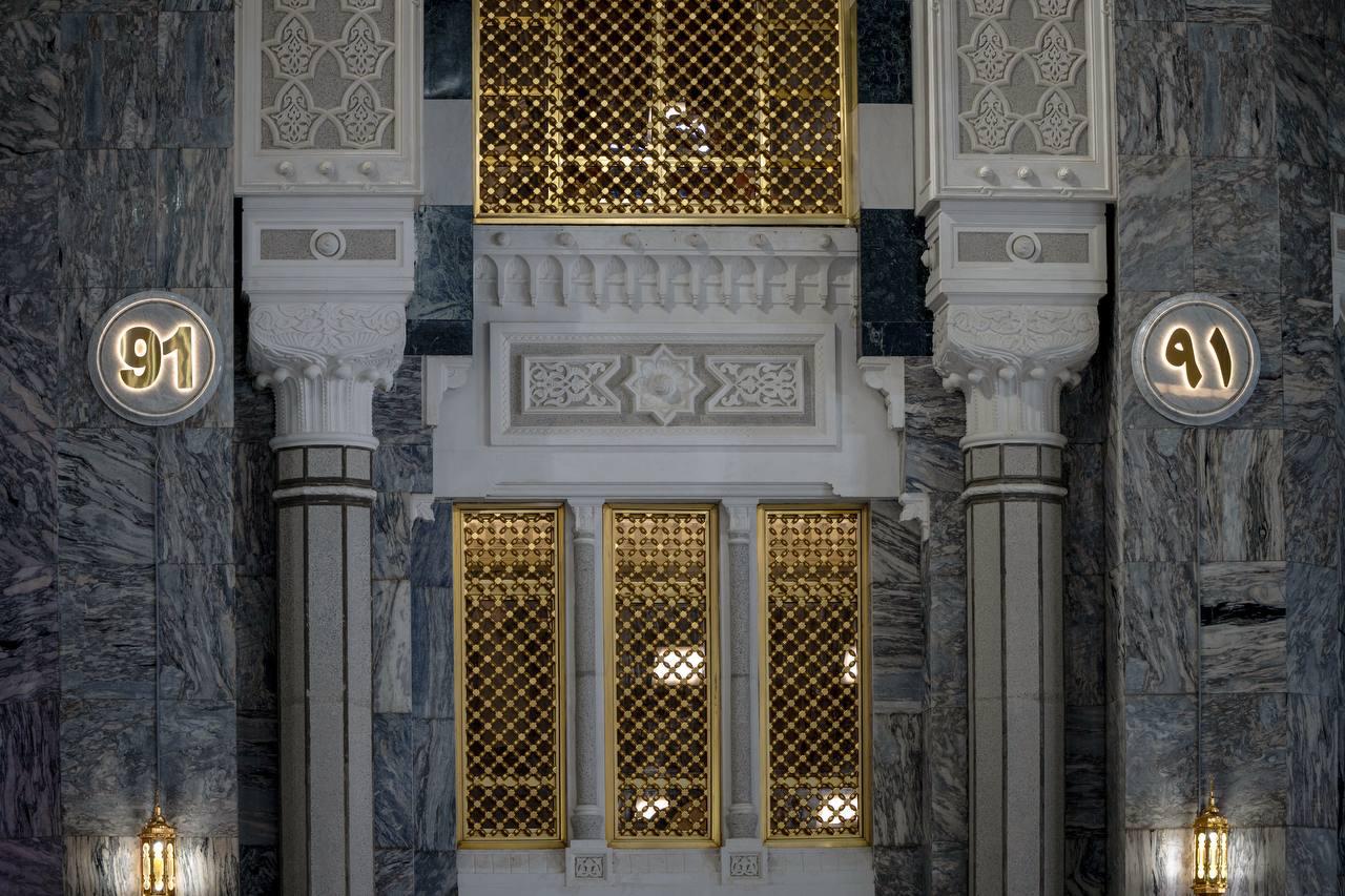 وشمل المشروع تنفيذ 92 لافتة لترقيم الأبواب في نطاق أبواب التوسعة السعودية الثانية حيث جرى تصميم اللافتات بأسلوب يراعي الهوية الجمالية للمبنى بما يضمن وضوح الترقيم ويعزز القيمة الجمالية للمكان مع الحفاظ على قدسيته وهيبته.