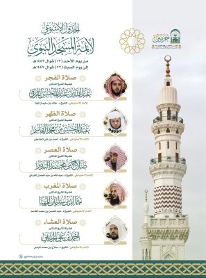 ويأتي اعتماد هذا الجدول في إطار تنظيم شؤون الإمامة بالمسجد الحرام والمسجد النبوي، بما يتيح للمصلين أداء عباداتهم في أجواء روحانية مفعمة بالطمأنينة، وبقيادة أئمةٍ من أهل العلم والخبرة.