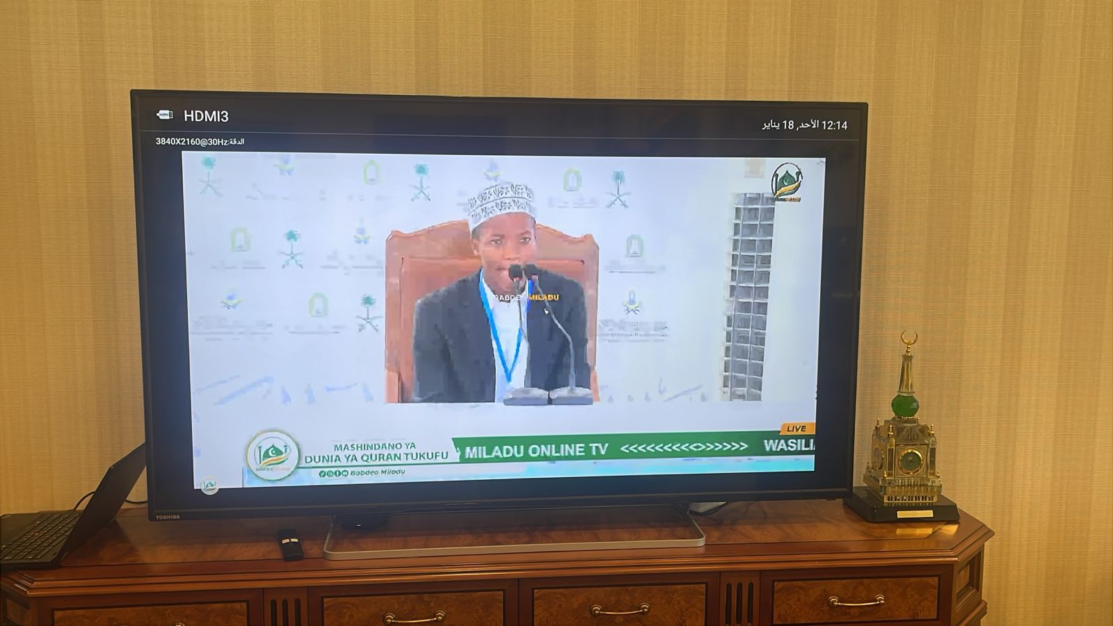 بتوجيه ومتابعة من معالي وزير الشؤون الإسلامية والدعوة والإرشاد الشيخ الدكتور عبداللطيف بن عبدالعزيز آل الشيخ وفي إطار اهتمام الوزارة بمتابعة برامجها الدولية في مختلف دول العالم، ونشر رسالة القرآن الكريم وتعزيز حضورها الدعوي والإعلامي عالميًا، نقلت الوزارة صباح اليوم الأحد 17 شوال 1447هـ فعاليات التصفيات النهائية لجائزة تنزانيا الدولية لحفظ القرآن الكريم في دورتها الرابعة والثلاثين، بشكل مباشر عبر شاشات العرض في ديوان الوزارة وفروعها، وذلك من الاستاد الرياضي بالعاصمة دار السلام، وسط حضور جماهيري كبير تجاوز (60) ألف مسلم، توافدوا منذ ساعات الصباح الباكر لمتابعة هذا الحدث القرآني