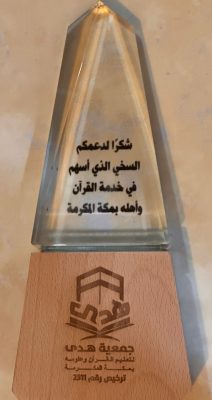 كرّمت جمعية هدى لتعليم القرآن الكريم وعلومه بشرق مكة المكرمة وضواحيها صحيفة شاهد الآن الإلكترونية خلال حفلها السنوي الثاني لتكريم حفظة كتاب الله، والذي شهد تكريم 148 حافظًا وحافظة من مختلف فروع الجمعية.