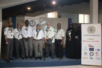 وترأس الوفد مدير المكتب الرائد الكشفي عبدالله بن أيوب طبل، يرافقه نائبه الرائد الكشفي عمران حمزة الهوساوي، ورئيس لجنة الإعلام والعلاقات العامة الرائد الكشفي محمد برناوي، ونائبه الرائد الكشفي عبدالحفيظ محمد عارف، إلى جانب أمين السر الرائد الكشفي فيصل عبدالهادي طبل، وعدد من الأعضاء هم: محمد بالطو، ووليد التويتي، والرائدة أمونه عثمان التاجر، وعائشة عطار.