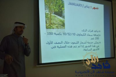 حيث افتتح الملتقى الارشادي المهندس احمد البدر من قسم الإرشاد الزراعي بالمديرية جدول يوضح فيه خدمة الليمون في كل شهر ميلادي و توقيت التسميد والمكافحة والتقليم وتنظيم الري خلال السنة.