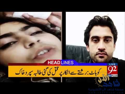 وقد ظهرت الفتاة في الفيديو وهي تلفظ اسم قاتلها أثناء احتضارها. وأفادت الصحيفة بأن الأخير ارتكب جريمته بعدما رفضت طلبه الزواج منها، لافتة إلى أنه يدعى مجاهد الله أفريدي وأن الشرطة ما زالت تبحث عنه.