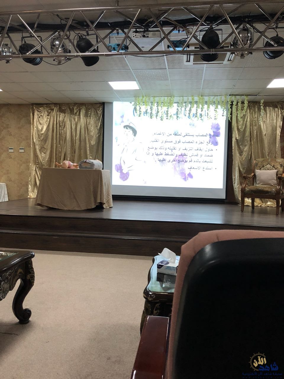 نظم مركز التأهيل الشامل للإناث بالدمام متمثلاً بقسم الجودة و السلامة محاضرة بعنوان ( الإسعافات الأولية و الإنعاش القلبي الرئوي ) الاثنين ٢٦/ ٥ / ١٤٣٩ قدمتها أخصائية التمريض بمجمع الأمل للصحة النفسية بالدمام / مدينة حسن آل درويش