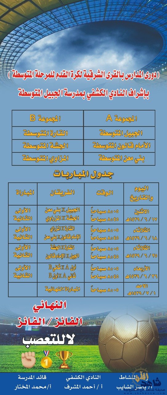 فيما انتهت المباراة الثانية بالتعادل بين متوسطة الجشة و المزاوي بهدفين لكل منهما..