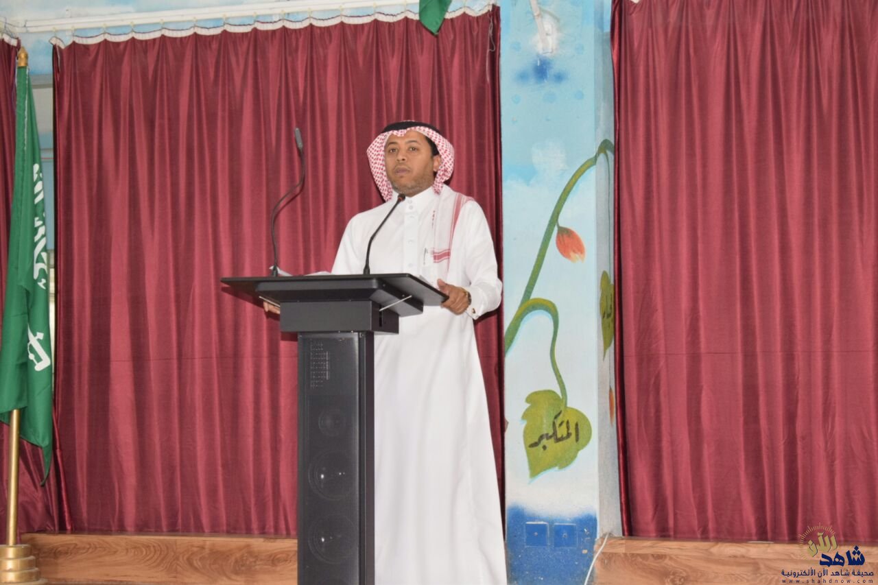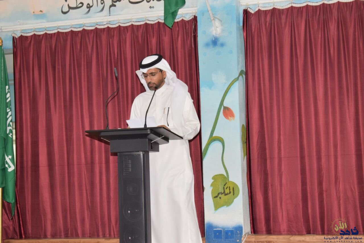 استهلّ البرنامج بحفل خطابي بدأ بآيات الذكر الحكيم تلاها الطالب/ عبد الله العساف، أعقبها كلمة قائد المدرسة الأستاذ/ خليفة بن خالد الشدي ، وتلا ذلك قصيدة شعرية عن الرفق ألقاها الأستاذ/ عبد الله بن طاهر المعيبد، وبعدها استمع الحضور إلى أنشودة