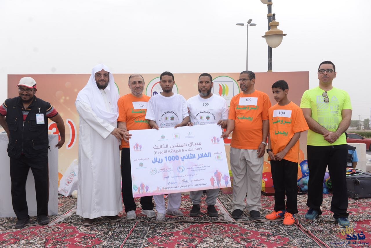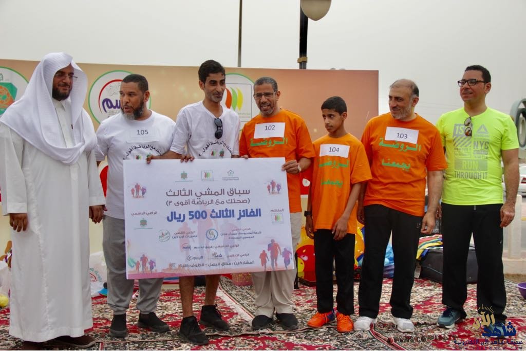 و في الختام كرم الدكتور أحمد البوعلي رئيس المجلس البلدي ، الفائزين والجهات المتعاونة وفي حديث متصل معه تحدث عن أهمية رياضة المشي محفزاً مثل تلك الفعاليات في نشر الوعي بمفهوم النشاط البدني وتوسيع قاعدة الممارسين له، وتنمية القدرات البدنية والحركية والكفاية الصحية ، واستغلال اوقات الفراغ بما يفيد كما أمتدح عمل فريق سالك التطوعي والقائمين على التنظيم.
