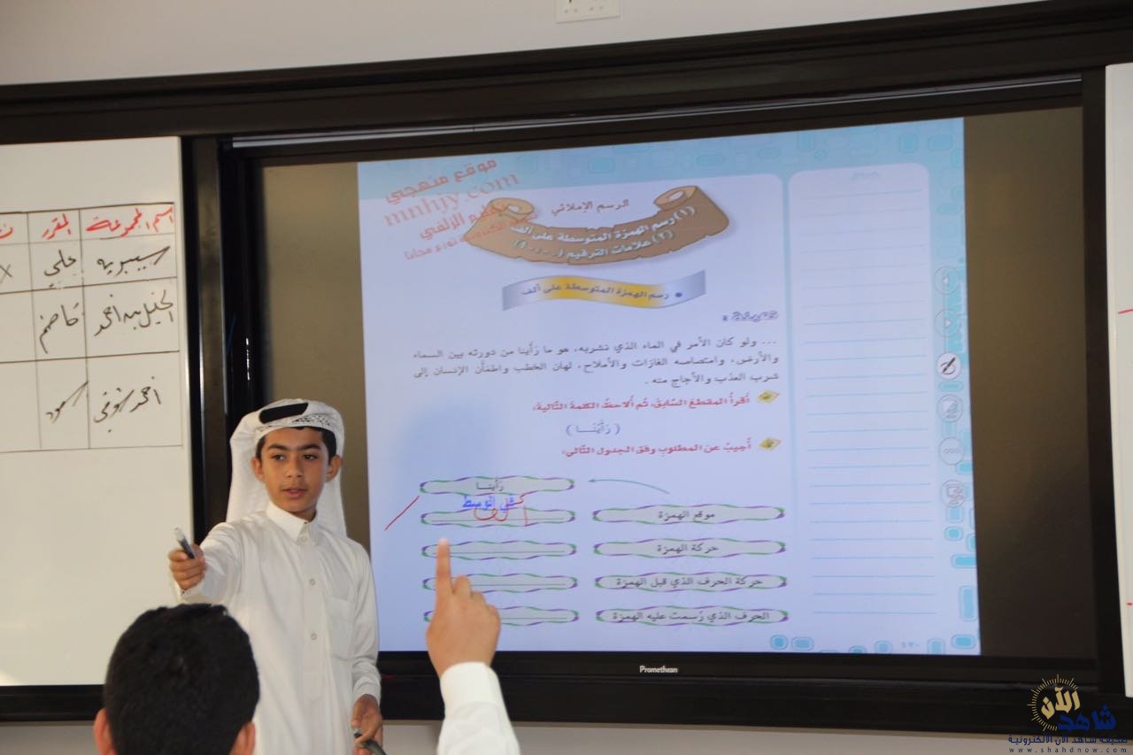 وبحضور المدير العام للتعليم قدم الأستاذ فالح القحطاني معلم اللغة العربية درساً نموذجياً في مادة لغتي الخالدة مطبقاً الإستراتيجيّات التعليمية ومستخدماً الوسائل التقنية الحديثة كالسبورة التفاعلية، وقد شارك الطلاب تنفيذ أنشطة الدرس عبر #بوابة_المستقبل .