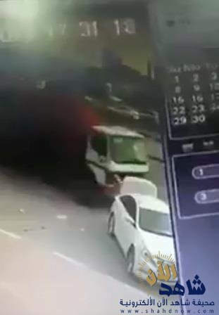رصدت كاميرا مراقبة ردة فعل شاب بعدما أنجاه الله من الوفاة أو التعرض لإصابة خطيرة عندما كادت تصطدم به شاحنة انحرفت عن الطريق.