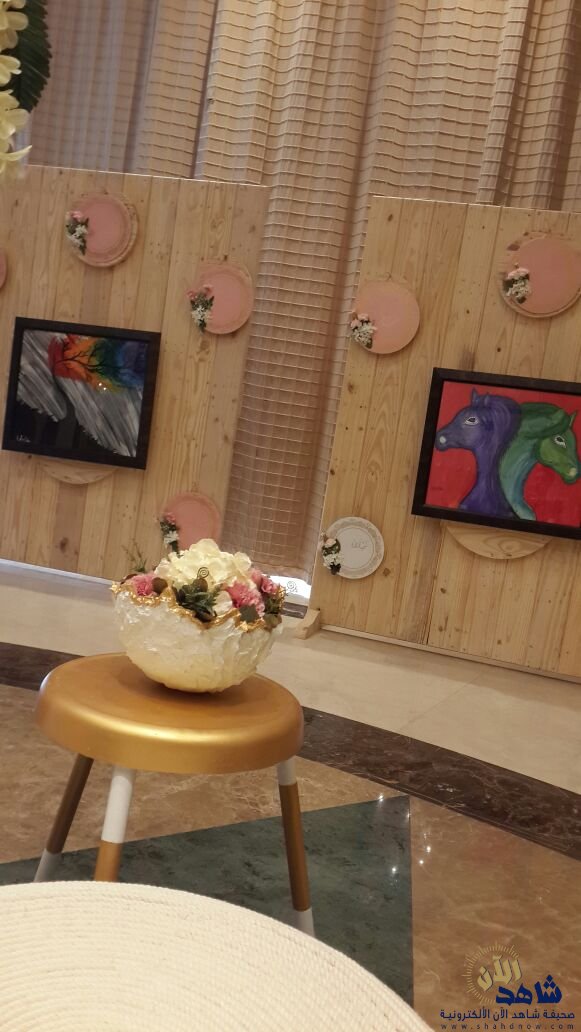 ورافق الملتقى معرض فني من لمسات إبداع فتيات الدار ..