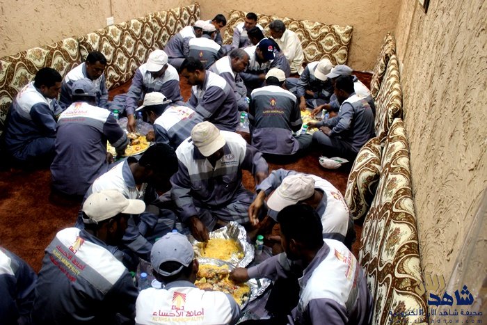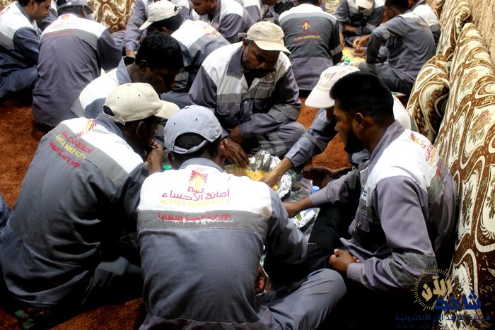 أقامت ديوانية المحبة بمدينة الجشة شرق محافظة الأحساء ، مساء اليوم الخميس عمل خيري “وليمة غداء لعمال النظافة” كمبادرة إنسانية من الأستاذ سلمان المعيويد (بو مقرن) وبمشاركة إخوانه بـ ديوانية المحبة ،