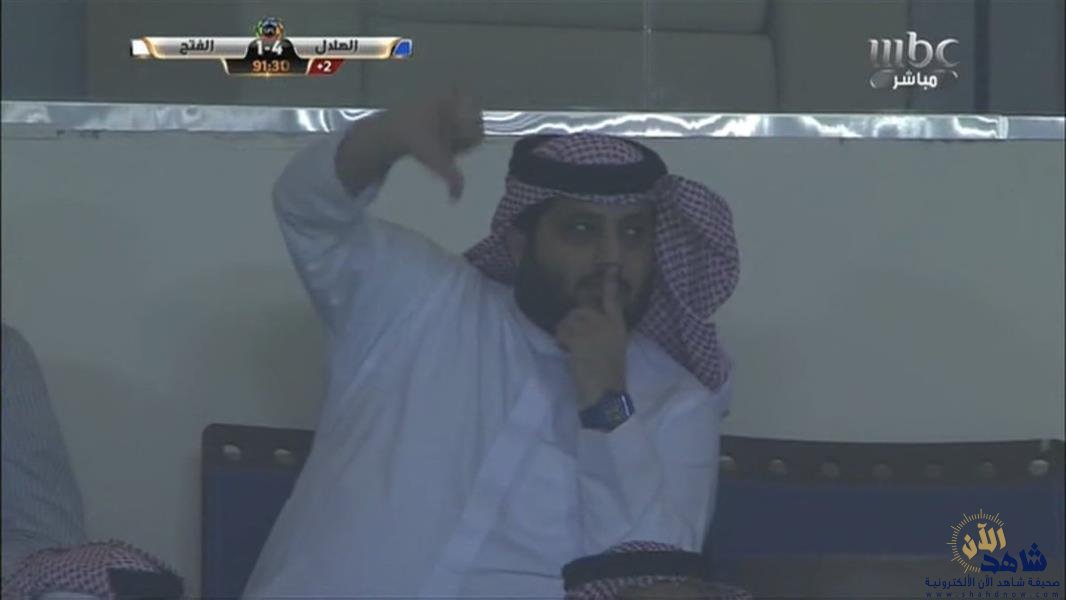 وأشار آل الشيخ بيده عدة مرات بإيماءة تدل على استيائه من تصرف الجماهير، وذلك في الدقيقة الأخيرة من المباراة التي انتهت بفوز الهلال بأربعة أهداف لهدف واحد.