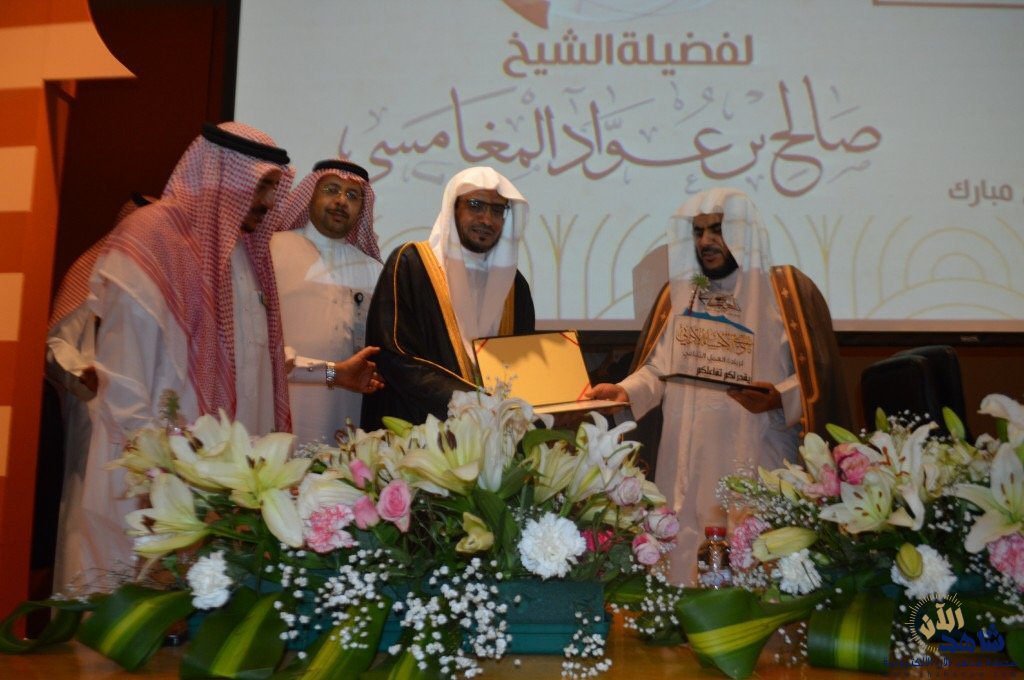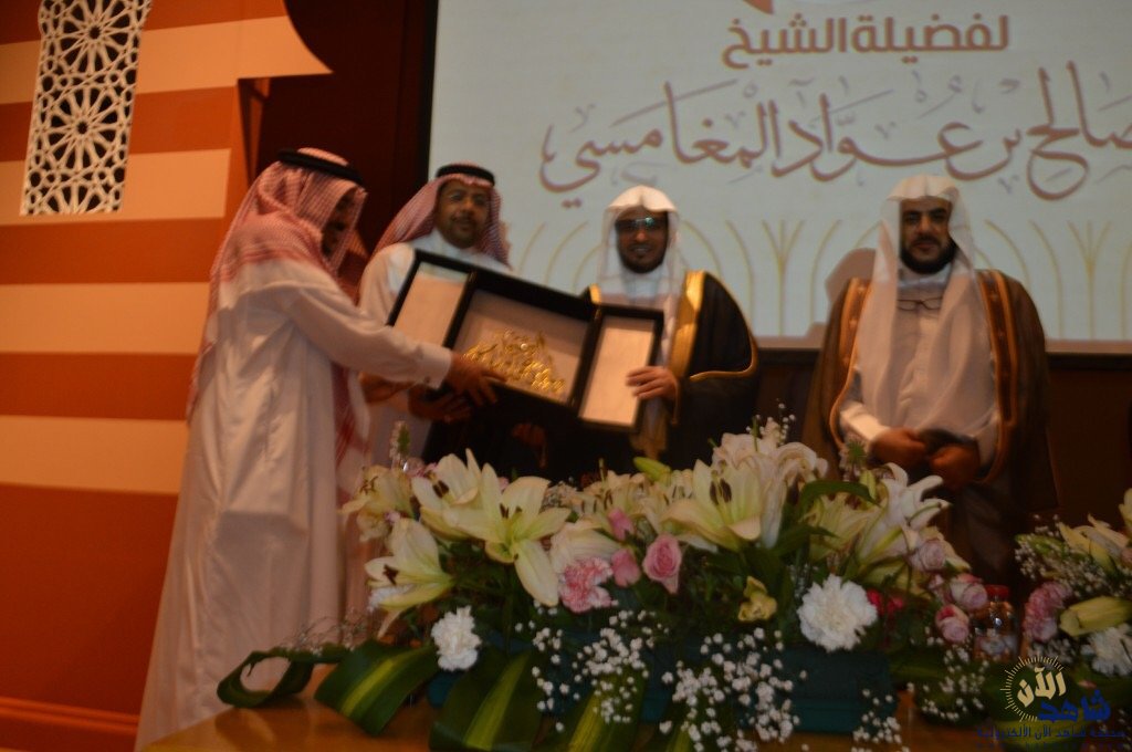 وفي ختام الأمسية التي حضرها جمع كبير من المحبين للشيخ، سلم رئيس مجلس إدارة النادي درعًا تكريميًا للشيخ صالح المغامسي.
