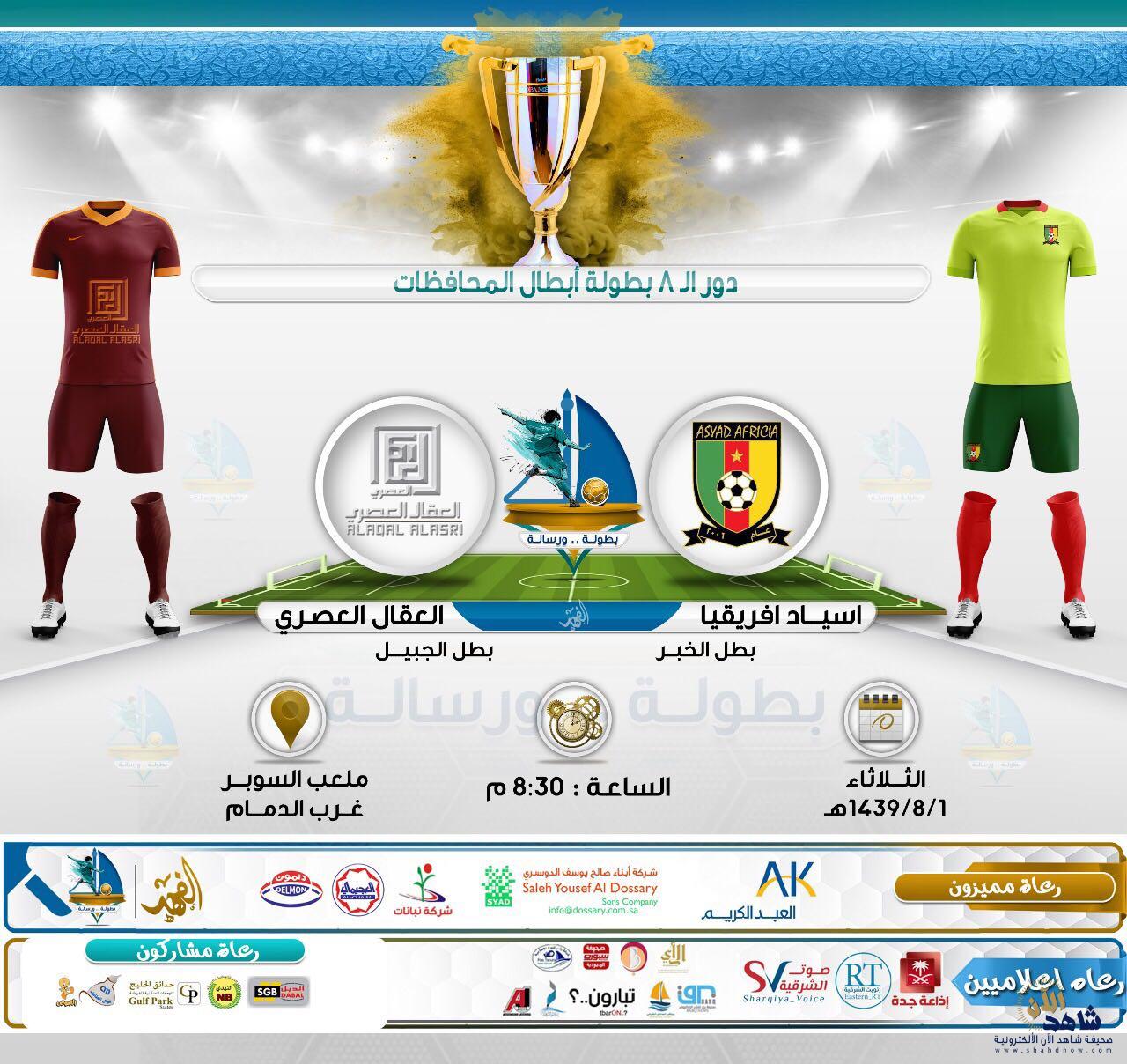 ينطلق مساء اليوم الثلاثاء دور الـ 8 لبطولة أبطال المحافظات على ملعب السوبر غرب الدمام بمواجهتين ..