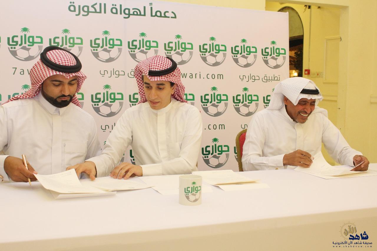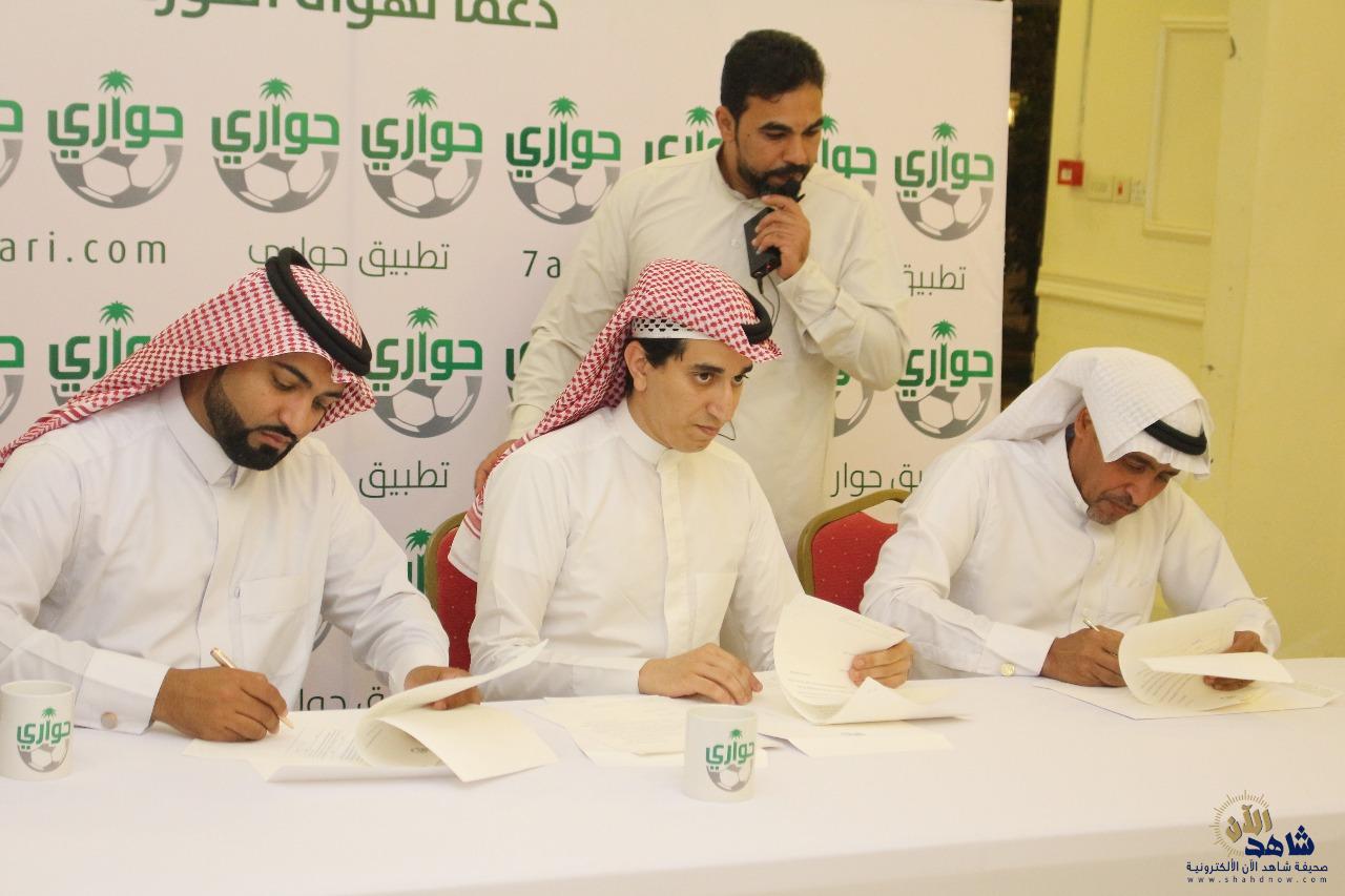 وقع مسئول تطبيق حواري الاستاذ طالب الجبران عقد الرعاية بين رئيس رابطة التعليق الرسمية بالأحساء الأستاذ محمد العوض ورئيس لجنة حكام الحواري بالأحساء الاستاذ سامي الصقر