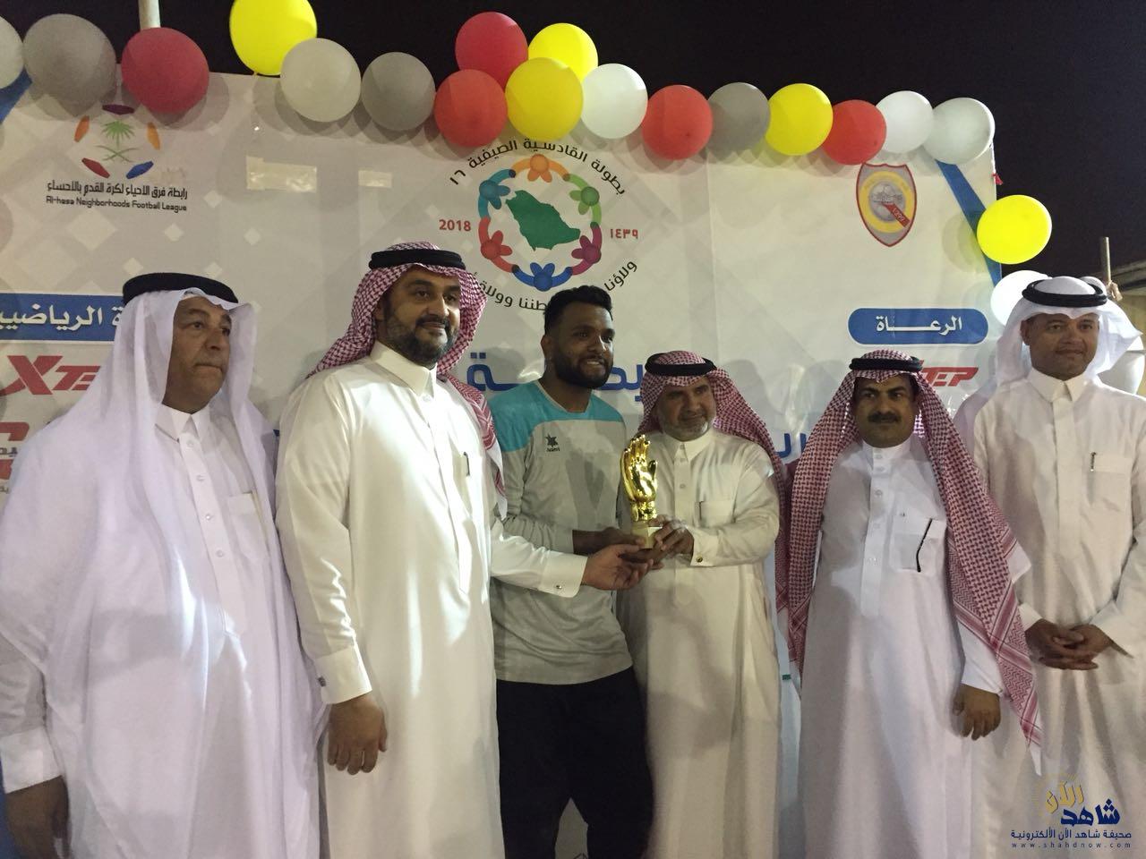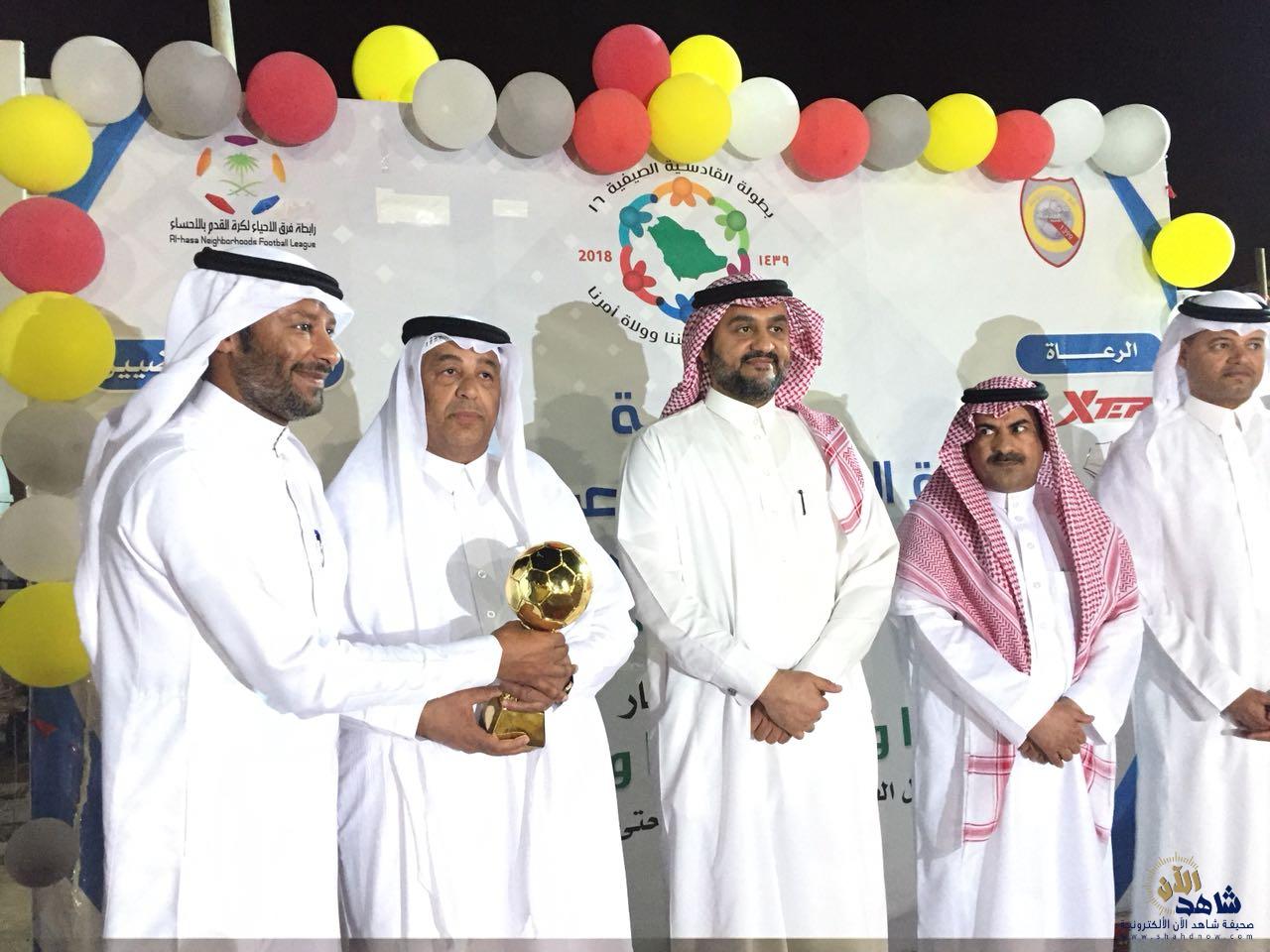 بعد أمسبه كرويه رائعه و كرنفال رياضي .رعاه مدير مكتب الهيئة العامة للرياضه بالأحساء الأستاذ عبداللطيف العرادي وبحضور العديد من الشخصيات الرياضيه و الاجتماعيه في مقدمتهم الأستاذ معيض العرجاني رئيس مجلس إدارة رابطة فرق الأحياء بالأحساء والأستاذ جاسم الجاسم عضو لجنة المسابقات بالاتحاد السعودي لكرة القدم ومدير مدينة الأمير عبد الله بن جلوي الرياضيه بالأحساء الأستاذ إبراهيم المبرزي والأستاذ فهد القحطاني عمدة حي الرقيقه ورئيس لجنة حكام كرة القدم الفرعيه بالأحساء الدولي ناصر المظفر وبعض رجال الإعلام وجمهور غفير .تم تتويج فريق نجمة الهفوف بكأس بطولة ٧القادسية السنويه الذي حمل اسم كأس الأستاذ إبراهيم المبرزي مدير مدينة الأمير عبد الله بن جلوي الرياضيه بالأحساء وحققت تلك البطوله نجاح كبير منقطع النظير بشهادة الجميع نتيجة الجهود الكبيره والمضنيه المتواصله دون ملل او كلل ليل نهار قبل وأثناء البطوله التي بذلها جميع أعضاء اللجان العاملةفي البطوله بقيادة رئيس اللجنه المنظمه رئيس فريق ألقادسيه الأستاذ راشد صالح المري الرجل صاحب العطاء المتجدد المتميز والمتمرس والخبير والمحبوب لدى الوسط الرياضي.حيث تمكن فريق نجمة الهفوف من الفوز على جاره وشقيقه ومنافسه القوي ألقادسيه المنظم للبطوله بالركلات الترجيحية بعد تعادلهما في الوقت الأصلي بهدف لمثله وكان المنظم البطوله هو البادي بالتسجيل برأسية نجمة مقدمته الخلوق المهاجم المخضرم لاعب فريق هجر وقائده وهدافه السابق خالد الرجيب وعادله لنجمة الهفوف نجمه المبدع المتألق عبدالاله الشاهين .وتم خلال استراحة ما بين الشوطين تكريم الداعمين للبطوله وبعض الإعلاميين .
