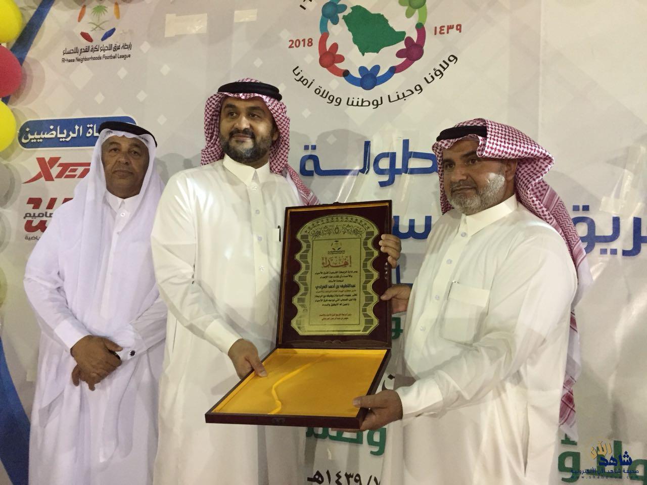 ..تكريم مدير مكتب الهيئة العامة للرياضه بالأحساء الأستاذ عبد اللطيف العرادي .من قبل الأستاذ معيض العرجاني .
