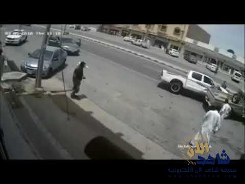 وظهر من خلال المقطع، الشاب وهو يهم بركوب سيارته، وبلحظة فتح الباب، اصطدمت سيارة مسرعة بسيارة أخرى تقف خلفه، قبل أن تصطدم بسيارته.