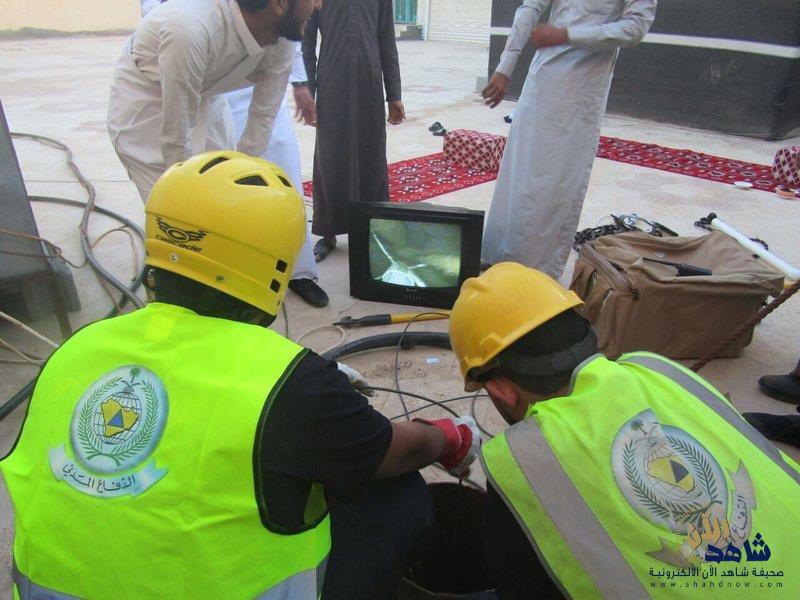 تمكن رجال الدفاع المدني بالقريات من إنقاذ قط سقط في بئر ارتوازية بمركز العقيلة .