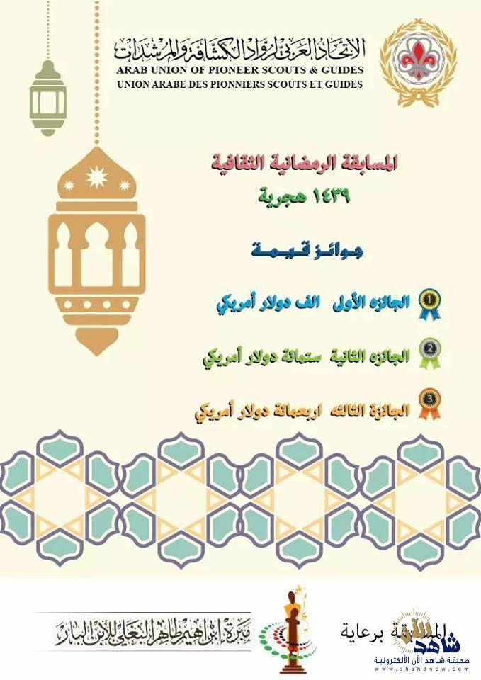 مع دخول شهر رمضان الفضيل هذا العام 2018 واعتبارا من مساء اليوم الجمعة الثاني من شهر رمضان المبارك الموافق الـ 11من شهر مايو الجاري يطلق الاتحاد العربي لرواد الكشافة والمرشدات ممثلة في لجنة البرامج والأنشطة المسابقة الثقافية للاتحاد في نسختها الثانية 1439هـ ، وهذه المسابقة الثقافية التي يشرف عليها الاتحاد عبر أحد انشط لجانها “لجنة الأنشطة والبرامج ” ، وهي ثقافية كشفية منوعة عامة مفتوحة للرواد والرائدات العرب وأسرة الحركة الكشفية في الوطن العربي الكبير ، وتم رصد جوائز للمراكز الثلاثة الأولى حيث يمنح الفائز بالمركز الأول مبلغ الف دولار امريكي ، فيما ينال صاحب المركز الثاني مبلغ ستمائة دولار امريكي ، في حين يحصل صاحب المركز الثالث على مبلغا وقدره اربعمائة دولار امريكي ، وهذه المسابقة تقام وللسنه الثانية على التوالي على برعاية كريمة من مبرة إبراهيم البغلي للابن البار، وسيتم نشراسئلة منوعه في كل جمعة اعتبارا من الثاني من شهر رمضان المبارك هذا العام 1439هـ بواقع اثناء عشر سؤالا طوال الشهر ، وسيتم نشر ثلاثة أسئلة متنوعه في المجال الديني والثقافي والكشفي والرياضي والتاريخي وغيرها في كل جمعة في الشهر الفضيل عبر وسائل التواصل الاجتماعي ، على تجمع الإجابات جميعها في نهاية شهر رمضان الفضيل وترسل مجتمعه على البريد الالكتروني الخاصة بالمسابقة : p.uae.s@hotmail.com ، وستوزع أسئلة المسابقة عبر وسائل التواصل الاجتماعي وبعض الصحف الالكترونية المهتم بالنشاط الكشفي إلى جانب صفحات التواصل الاجتماعي الخاصة بالاتحاد على الشبكة العنكبوتية “الانترنت”