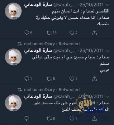 شن ناشطون كويتيون وحسابات إخبارية عبر مواقع التواصل الاجتماعي، هجومًا على خبيرة التجميل ونجمة مواقع التواصل السعودية الشابة سارة الودعاني، بعد تغريدات منسوبة لحساب يحمل اسمها تمتدح فيه الرئيس العراقي صدام حسين. واستنكر ناشطون مجموعة تغريدات على صفحة في موقع التواصل “تويتر” (غير موثقة) تحمل اسم سارة الودعاني، يعود تاريخها إلى عام 2011. وكتب حساب “المجلس” الإخباري الشهير في الكويت منتقدًا الودعاني: “مذيعة قناة العدالة الكويتية «ATV» تمتدح المقبور صدام حسين!”. وفيما أكد أحد الناشطين، أن الحساب اشترته الودعاني، ولم يكن لها في السابق، خاصة وأن تغريدات يعود زمنها إلى قبل 7 سنوات على الأقل، رأى آخرون أن كون التغريدات قديمة، فإن هذا لا يبرر فعلتها، متسائلين عن قبولها بعد مثل هذه التغريدات بالعمل في قناة كويتية. وانتقد كويتيون تمثيل سارة الودعاني لإعلامهم في الكويت، خاصة وأنها تخوض أولى تجاربها في البرنامج الكويتي 3s مع كل من شيلاء سبت والإعلامي صالح الراشد. وجاء في التغريدات، مديح بصدام حسين، وإشادة به، وعبارات تبدي إعجابًا بشخصه، فيما لم يصدر من الإعلامية السعودية أي تعليق لحد اللحظة على الواقعة. ولا يمكن لموقع “إرم نيوز” التثبت من صحة المعلومات المتداولة.