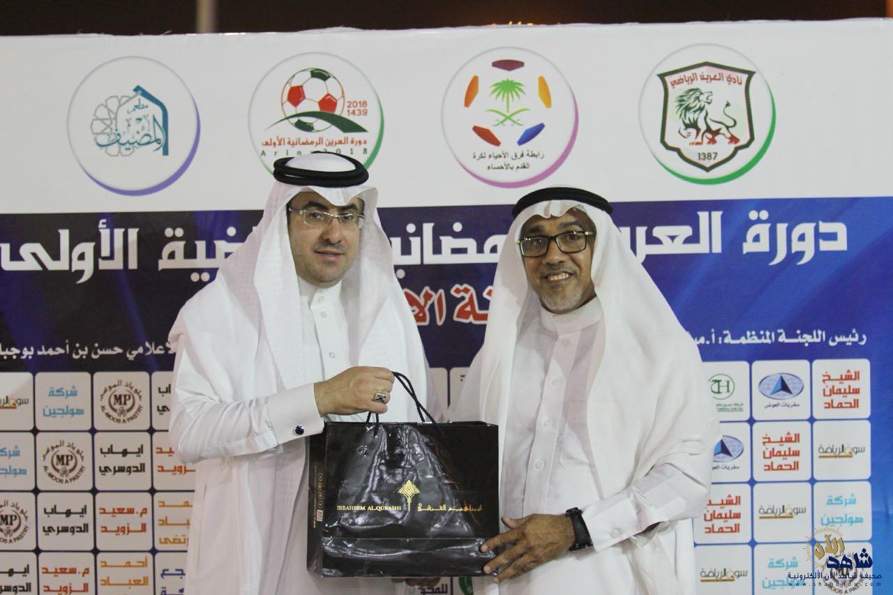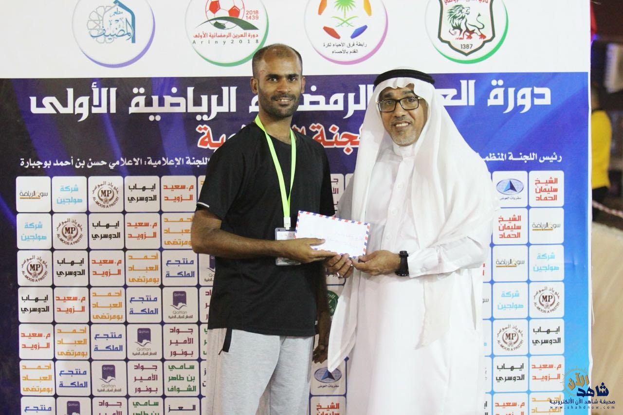 تكفل الداعم البرونزي لبطولة العرين الرمضانية الأولى المهندس سعيد الزويد ” أبو عبد العزيز ” بتكريم اللجنة الإعلامية نظير ما يقدمونه من عمل احترافي و مواد مميزة تجعل المتابع في قلب الحدث ، حيث أوضح الزويد أن الاعلام يمثل دور كبير في نجاح البطولات مبيناً أن العرين استطاع التفوق على الكثير من البطولات من لها باع طويل و خبرة في التنظيم وهذا يعود لتواجد كوكبة من الاعلاميين المميزين برئاسة الاستاذ القدير حسن بو جبارة الذي يتحفنا بتنظيمه الرائع وكذلك المصور أحمد النجار في التقاطعه المميزة و المصور ناصر بن علي في مقاطع الفيديو و الاستاذ محمد الصالح المسؤول عن نشر التغطيات في جميع وسائل التواصل و عمل الحوارات والتصريحات بالاضافة للمتخصص في تصوير السؤال الأخ عدنان الأبوي و صاحب اللمسات الأخيرة في المونتاج الأخ أحمد يعقوب .