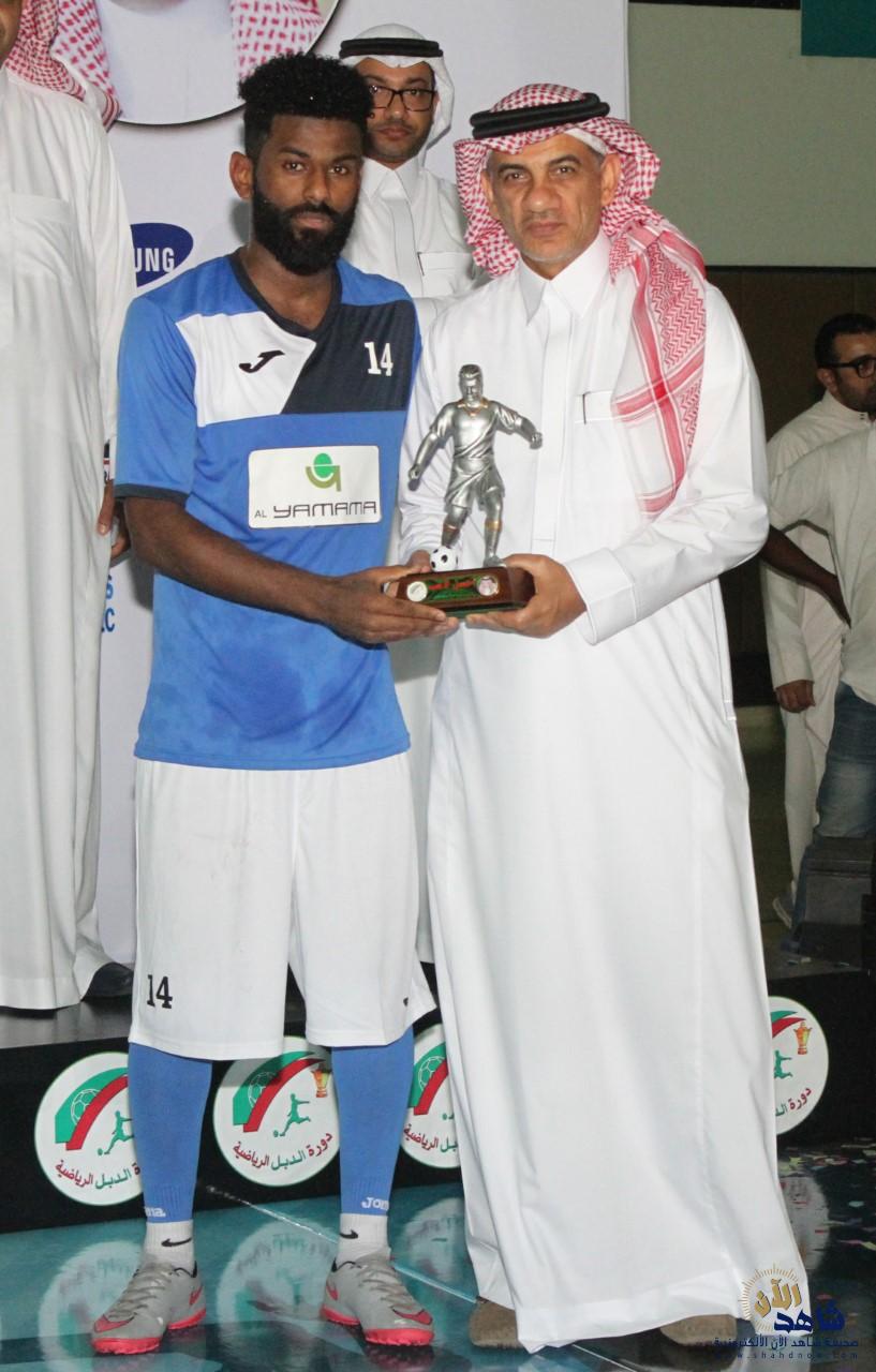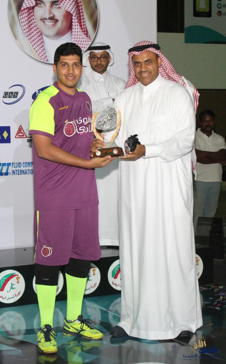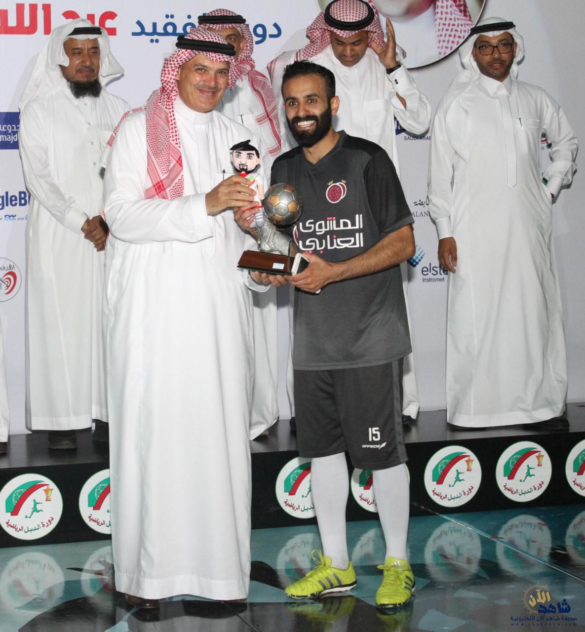 *كرم المهندس عارف الدبل هداف البطولة وهو لاعب العنابي فارس القحطاني برصيد خمسة اهداف.