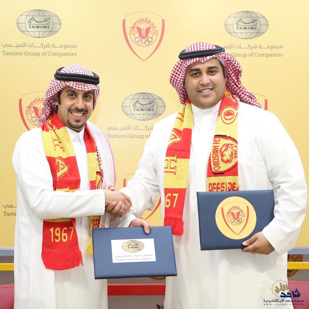 حيث تم توقيع الرعاية بين كل من رئيس نادي القادسية الاستاذ مساعد الزامل وبين نائب الرئيس الأول للمال والاستثمار في مجموعة شركات التميمي الاستاذ فواز بن طلال التميمي