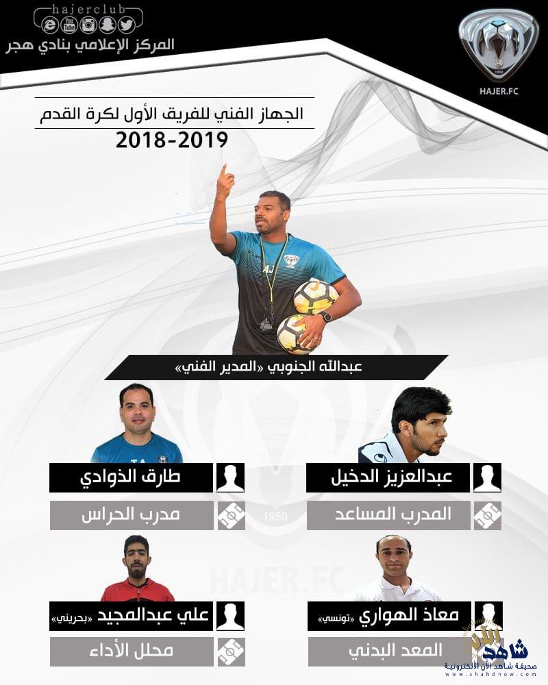 اعتمد رئيس مجلس إدارة نادي هجر الأستاذ حمد عبدالله العريفي الطاقم الفني الذي سيتولى مهمة تدريب الفريق الكروي الأول خلال مشاركته في دوري الأمير محمد بن سلمان للدرجه الأولى للمحترفين الموسم القادم وجاء على النحو التالي ..