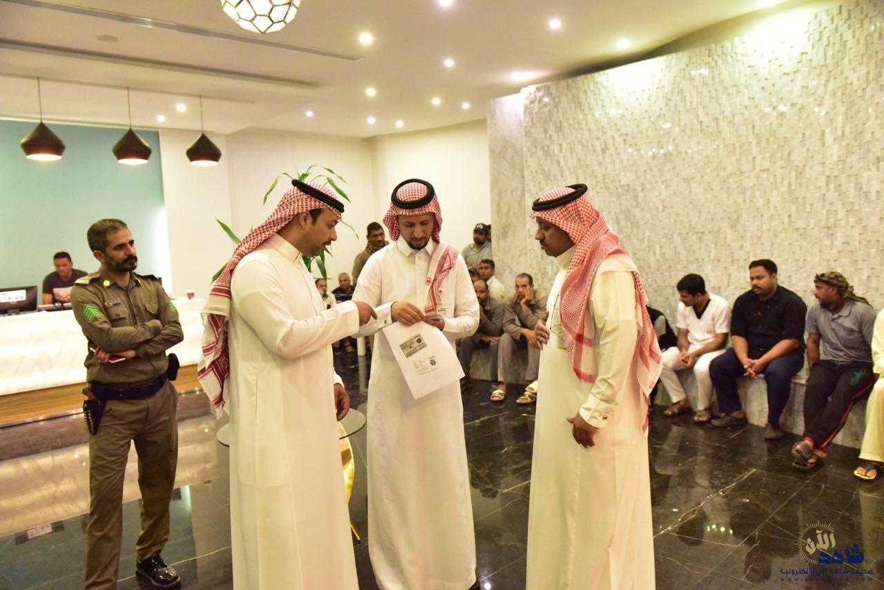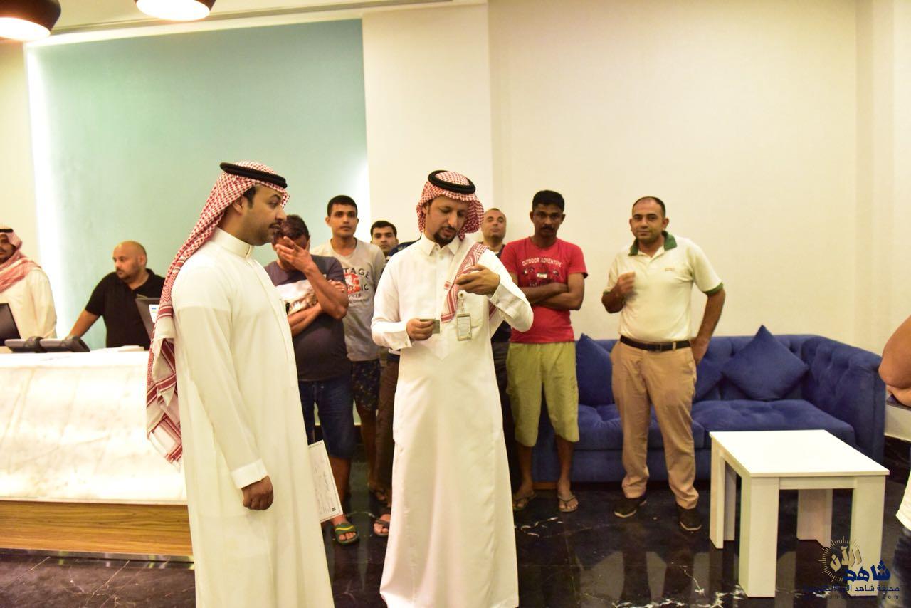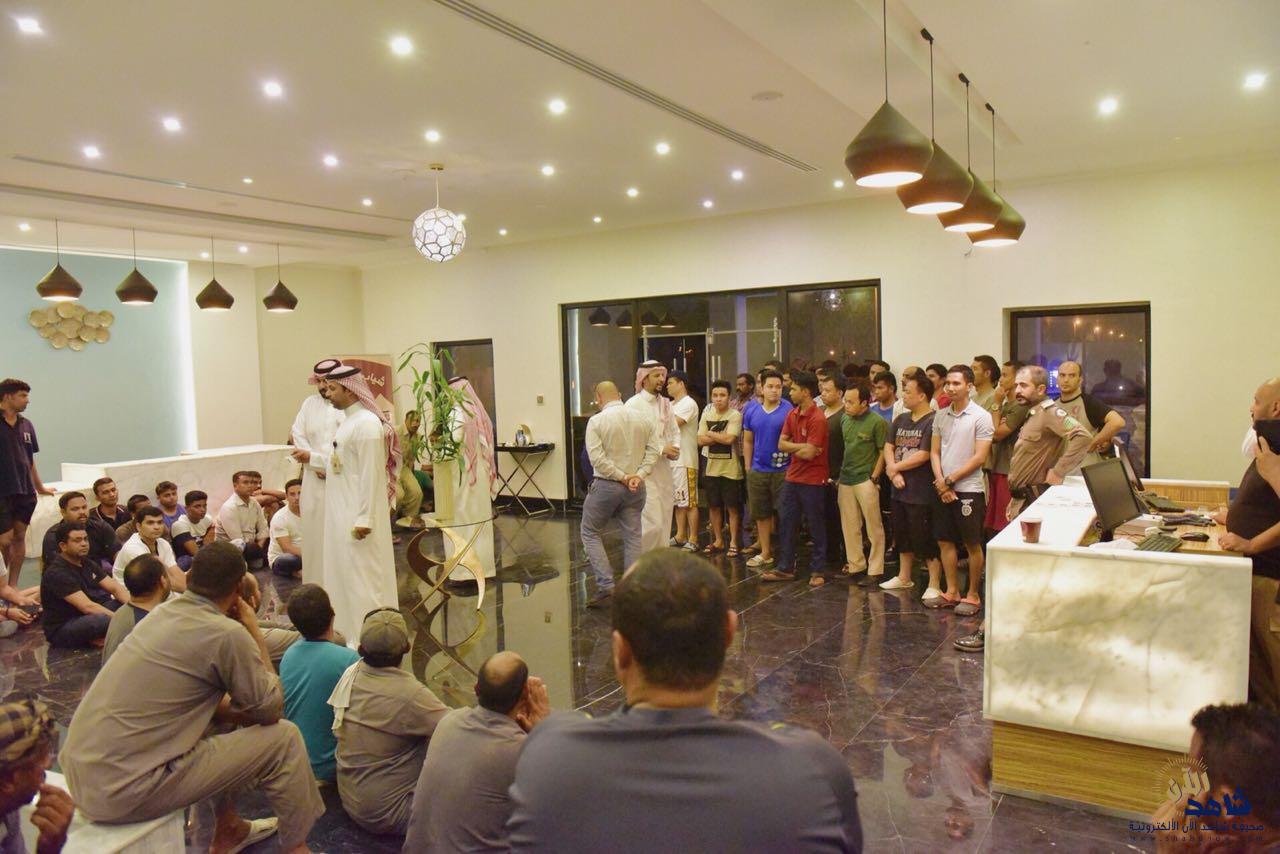 نفذ مكتب العمل بمحافظة الخبر وبمشاركة من قبل الجهات الامنية ممثله في شرطة الظهران حملة مشتركة على احدى المنتجعات الشهيرة بمحافظة الخبر بعد ان توفرت معلومات بتواجد اعداد كبيرة من العمالة المخالفة تعمل وتسكن داخل المنتجع .