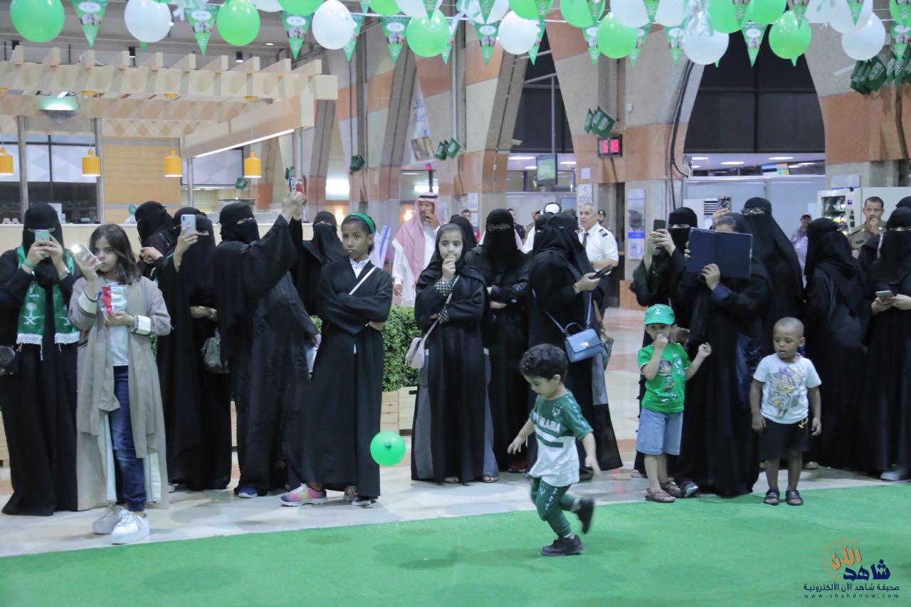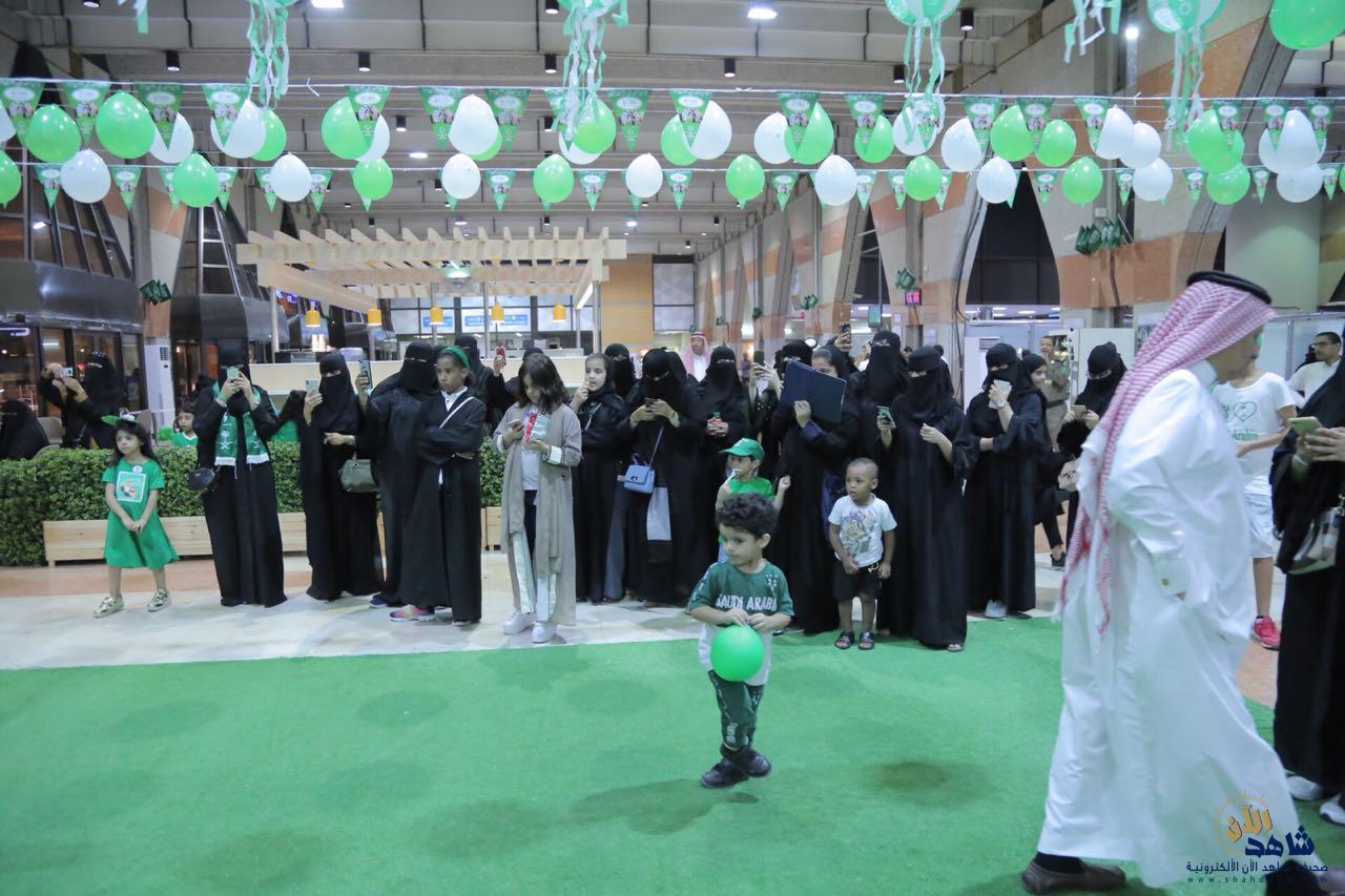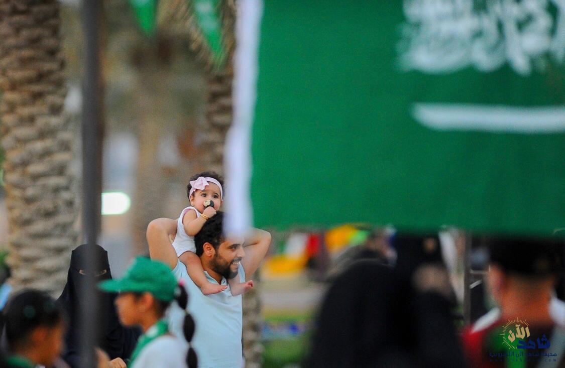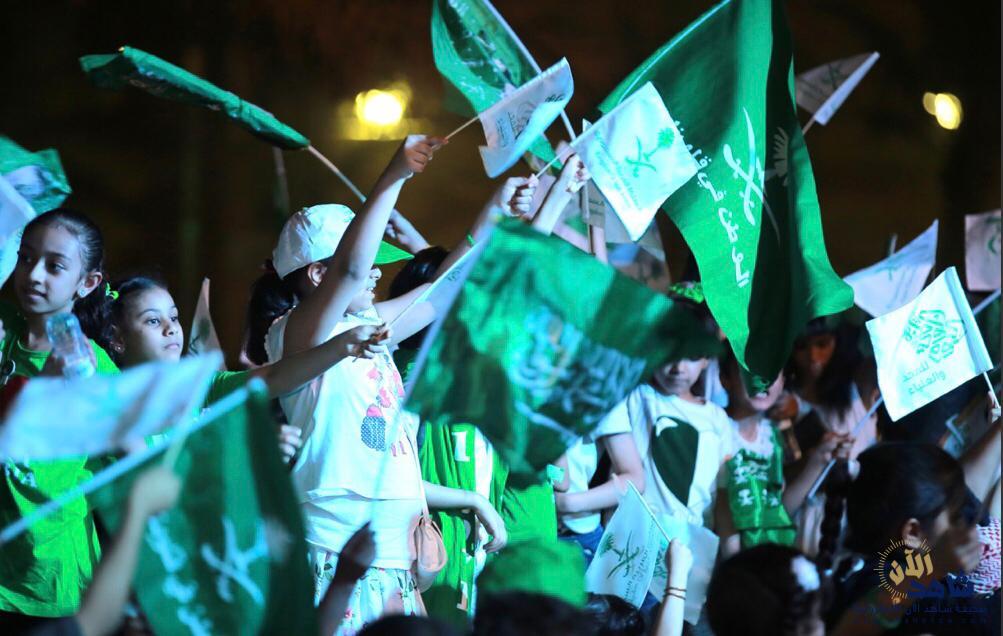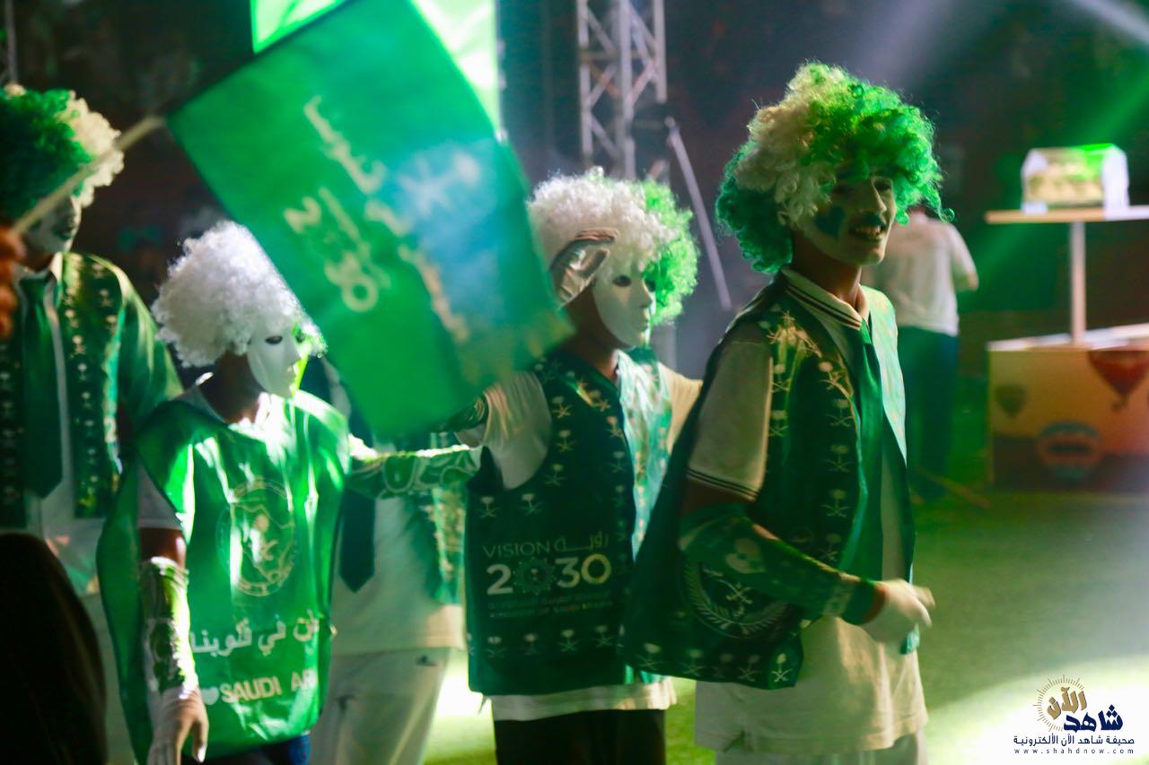 بعد ذلك، قدمت فرقة الفنون الشعبية عروض العرضة السعودية، وسط دوي أصوات الطبول وتراقص السيوف مرددين أهازيج النصر والفخر “سيدي سمعاً وطاعة”، رافعين راية العلم السعودي خفاقاً وسط المسرح المائي في المنتزه.