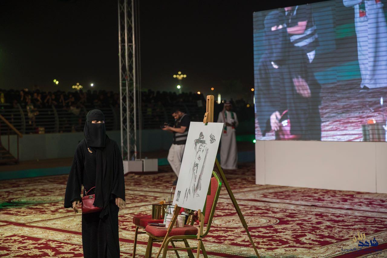 وفي لوحة وطنية كرم الأمير بدر بن جلوي أبناء الشهداء حظيت بتفاعل الحضورمعها، وقدمت لهم الهدايا وشهادات الفخر والاعتزاز، وعرضت طالبة الكلية التنقية للبنات “حليمة الراشد” رسمة للملك سلمان باستخدام فن “القليتر” والتي قامت برسمها على المسرح وأثارت إعجاب الحضور.