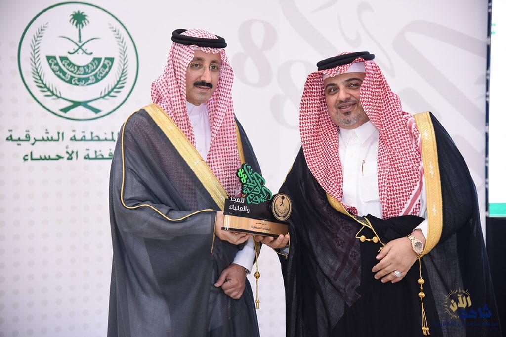 كرم صاحب السمو الأمير بدر بن محمد بن جلوي ال سعود محافظ الاحساء ظهر اليوم الاثنين بالقاعة الكبرى بمحافظة الأحساء 63 جهة حكومية وأهلية أسهمت في نجاح فعاليات الاحتفال باليوم الوطني الثامن والثمانين أقيمت في 12 موقع مختلف بالأحساء يوم 23 أغسطس الماضي بحضور عدد كبير من المواطنين والمقيمين تجاوز 300 ألف زائر.