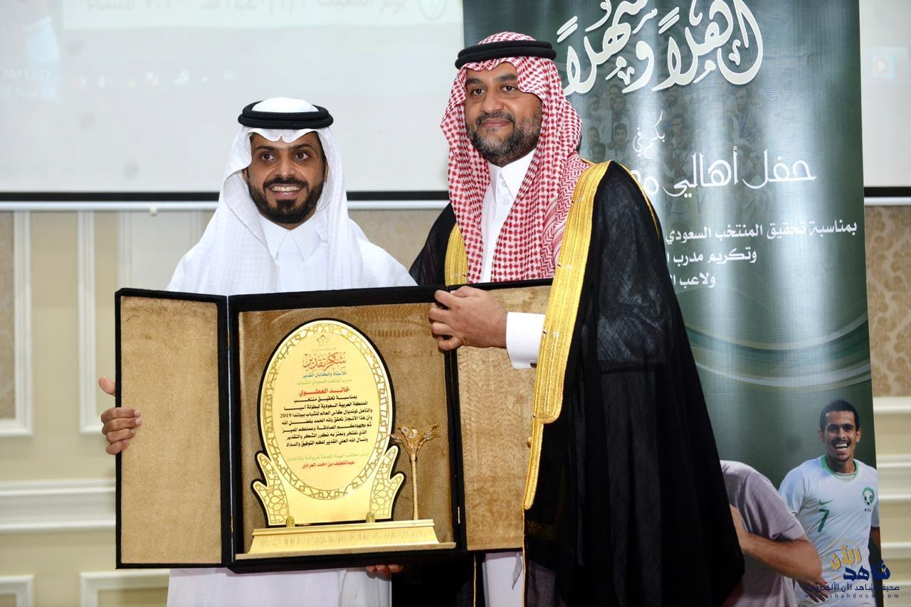 نظم أهالي مدينة العيون مساء أمس السبت في قاعة جمعية العيون الخيرية بحضور رئيس مركز العيون عبدالهادي بن راشد العجمي ومدير مكتب الهيئة العامة للرياضة بمحافظة الأحساء عبداللطيف العرادي ورئيس المجلس البلدي بالمحافظة الدكتور أحمد البوعلي وعدد من مسؤولي الجهات الحكومية والخيرية ورجال الأعمال والوجهاء ورؤساء أندية الأحساء والرياضيين في المحافظة احتفائية كبرى بمناسبة تحقيق المنتخب السعودي كأس أسيا للشباب والتأهل لكأس العالم وتكريم مدرب المنتخب خالد العطوي واللاعب سالم السليم .