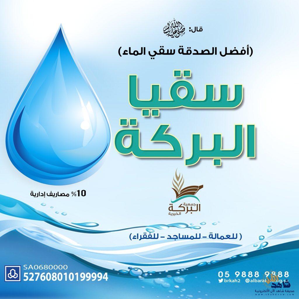 أطلقت جمعية البركة الخيرية بالدمام برنامج جديد يضاف لبرامج البركة هو ” برنامج سقي الماء ” . وقد أوضح المدير التنفيذي لجمعية البركة الخيرية أحمد بن يحيي الزهراني بقوله انطلاقا من قوله تعالى (وَجَعَلْنَا مِنَ الْمَاءِ كُلَّ شَيْءٍ حَيٍّ ۖ أَفَلَا يُؤْمِنُونَ) وقول رسوله صلى الله عليه وسلم ” أفضل الصدقة سقي الماء ” ومن هذا المنطلق تم اطلاق برنامج ” سقي الماء ” وفكرة البرنامج تنقسم الى 3 أقسام . اولاً الأسر المعتمدة والمسجلة رسمياً لدى الجمعية بحيث تحصل كل أسرة على برادة ماء مع ثلاث ” دبات ” قوارير ماء القابلة للاستبدال ويتم اعادة التعبئة باستمرار .
