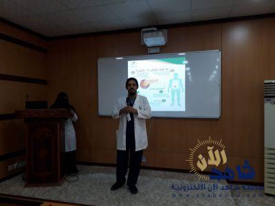 حيث بدات الفعالية محاضرات علمية تثقيفية بدا في الاخصائية ليلى الحسيني مسؤولة التوعية الصحية بمقطتطفات سريعة ومعلومات عن سبب اختيار هذا اليوم وعن سبب اختيار شعاره وان فردريك بنتنغ الذى ولد في 14 نوفنبر هو مكتشف الانسولين . كما ذكرت ان المملكة تحتل في مراكز متقدمة بكثرة الاصابة بداء ااسكرى ومن هذا المنطلق حرصت ادارة المستشفى على نشر الوعي الصحي وتعزيزه وتغير السلوك الخاطئ . كما اوضح الدكتور امين العلي في تعريف عن السكري بشكل جذاب يسهل على المتلقي فهمه حيث عرفه بانه مرض مزمن يصاب به الانسان حين لا يعمل البنكرياس على افراز الانسولين بشكل كلي او انخفاض حساسية الانسجة له او الاثنين معا . كما ذكر وصنف انواعه الثلاث