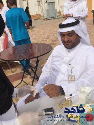 وبعد ذلك تم اجراء الفحص السكري على بعض الزوار وارشادها على القراءات الصحيحة والجرعات المناسبة لكل مريض . كما تم تطعيمهم ضد الانفلونزا الموسمية .
