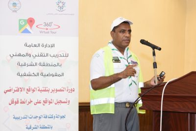 وقدم الدورة كل من المفوض الكشفي بالقطاع الشرقي القائد الدولي وليد بن خليفة الزويمل، ومفوض خدمة وتنمية المجتمع القائد الدولي وليد بن محمد الشويهين، حيث يأتي هذا البرنامج كمبادرة من المفوضية الكشفية في إدخال الوحدات التدريبةً بالمنطقة الشرقية في عالم الواقع الافتراضي وذلك تماشيا مع أهداف المؤسسة العامة التدريب التقني والمهني في نشر ثقافة التدريب التقني بالمملكة، وشارك في الدورة التي أقيمت على مرحلتين في الدمام والأحساء (90) جوال وكشاف من الوحدات التدريبية بالمنطقة على أن يتم إقامتها لاحقاً في حفر الباطن، بهدف تدريبيهم على كيفية استخدام هذه التقنية وتصوير وحداتهم التدريبية بزاوية 360 درجة باستخدام الأجهزة الخاصة للتصوير، أو استخدام كاميرات الجوالات في عملية التصوير ومن ثم رفع الصور أو الفيديو على خرائط قوقل.