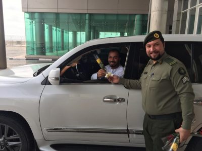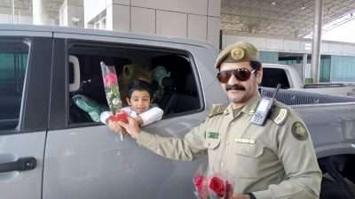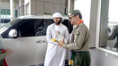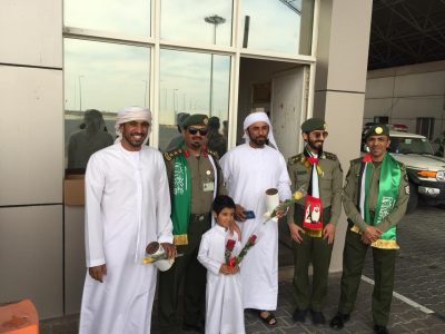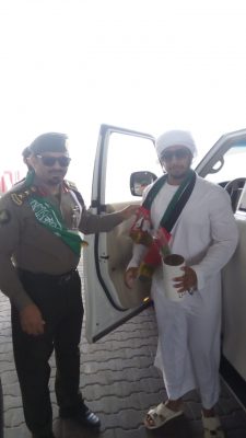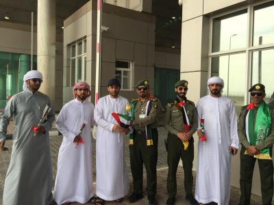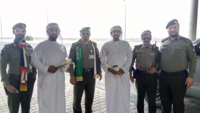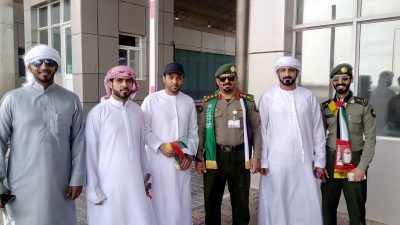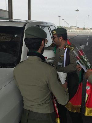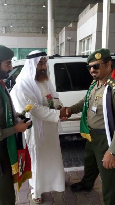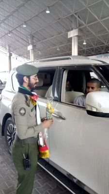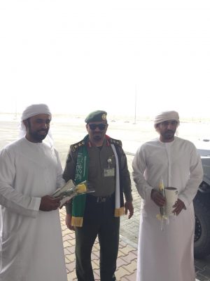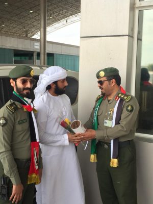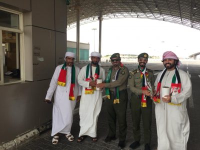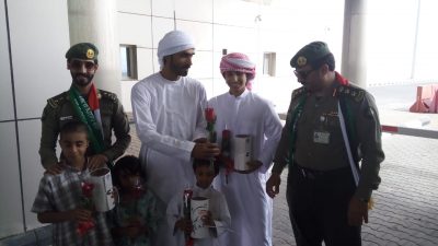 استقبلت جوازات منفذ البطحاء المسافرين القادمين والمغادرين من و الى دولة الامارات العربية المتحدة الشقيقه بكل حفاوة وترحيب استقبال يليق باشقائنا الاماراتيين وقد تم خلال استقبالهم توزيع الورود والهدايا بمناسبة اليوم الوطني الاماراتي السابع والاربعون وكان ذلك بمشاركة سعادة مدير جوازات منفذ البطحاء العقيد خالد بن سعيد القحطاني ومتابعة من سعادة مدير جوازات المنطقة الشرقية العميد محمد بن سليمان العوفي وبتوجيهات من سعادة مدير عام الجوازات اللواء سليمان بن عبدالعزير اليحي .