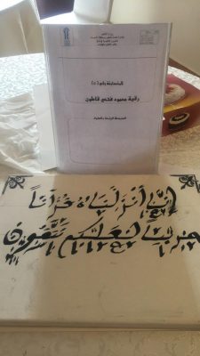وحصلت الطالبة : الزهراء موسى بو عامر من متوسطة القارة الأولى على المركز الأول في مسابقة الخط العربي