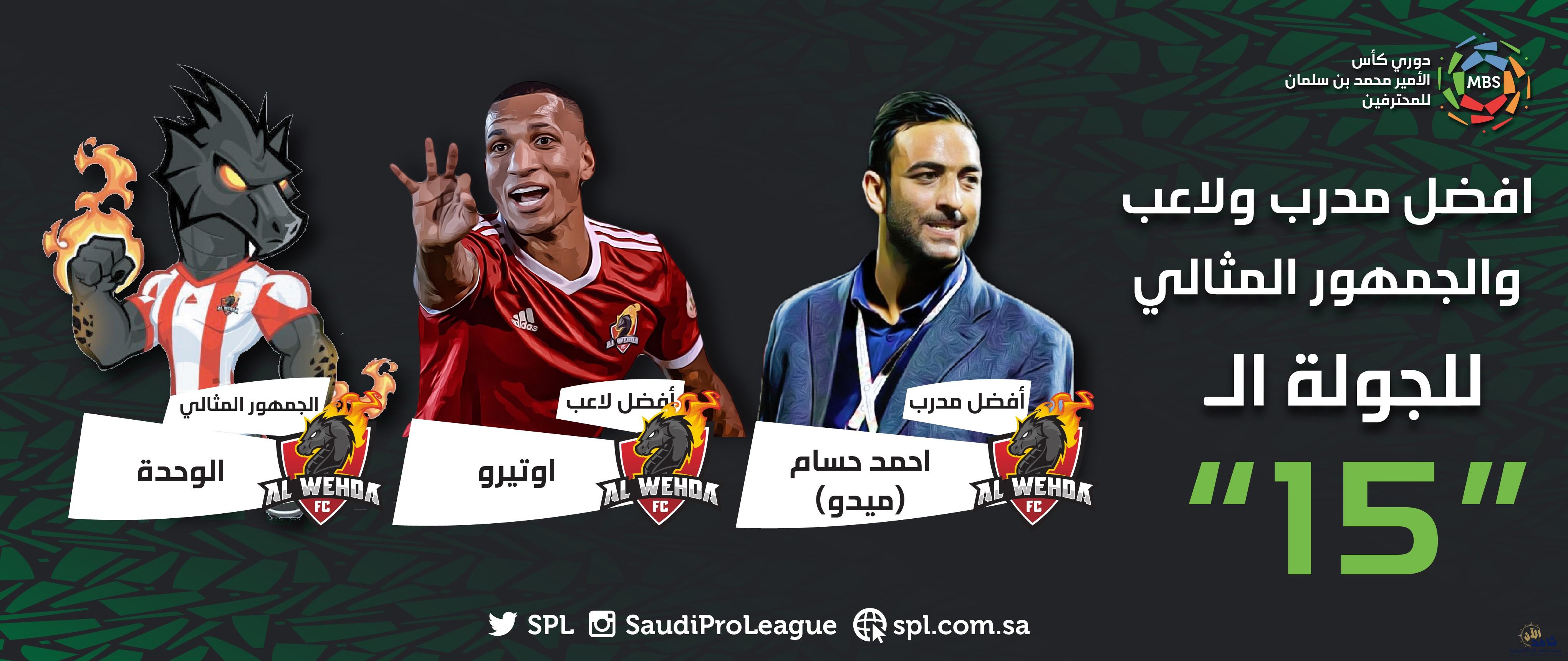 تمكن نادي الوحدة من حصد النجومية المطلقة في جوائز الجولة الخامسة عشرة بختام الدور الأول من بطولة دوري كأس الأمير محمد بن سلمان للمحترفين، بعد أن نجح مدربه المصري المؤقت أحمد حسام (ميدو) من الفوز بجائزة مدرب الجولة، حيث استطاع التغلب على فريق الأهلي في الجولة الماضية من منافسات بطولة الدوري بهدفين مقابل هدف، في حين ذهبت جائزة أفضل لاعب بالجولة للاعب الفريق الفانزويلي روميلي اوتيرو والذي حصد في وقت سابق جائزة أفضل لاعب في شهر أكتوبر الماضي.