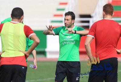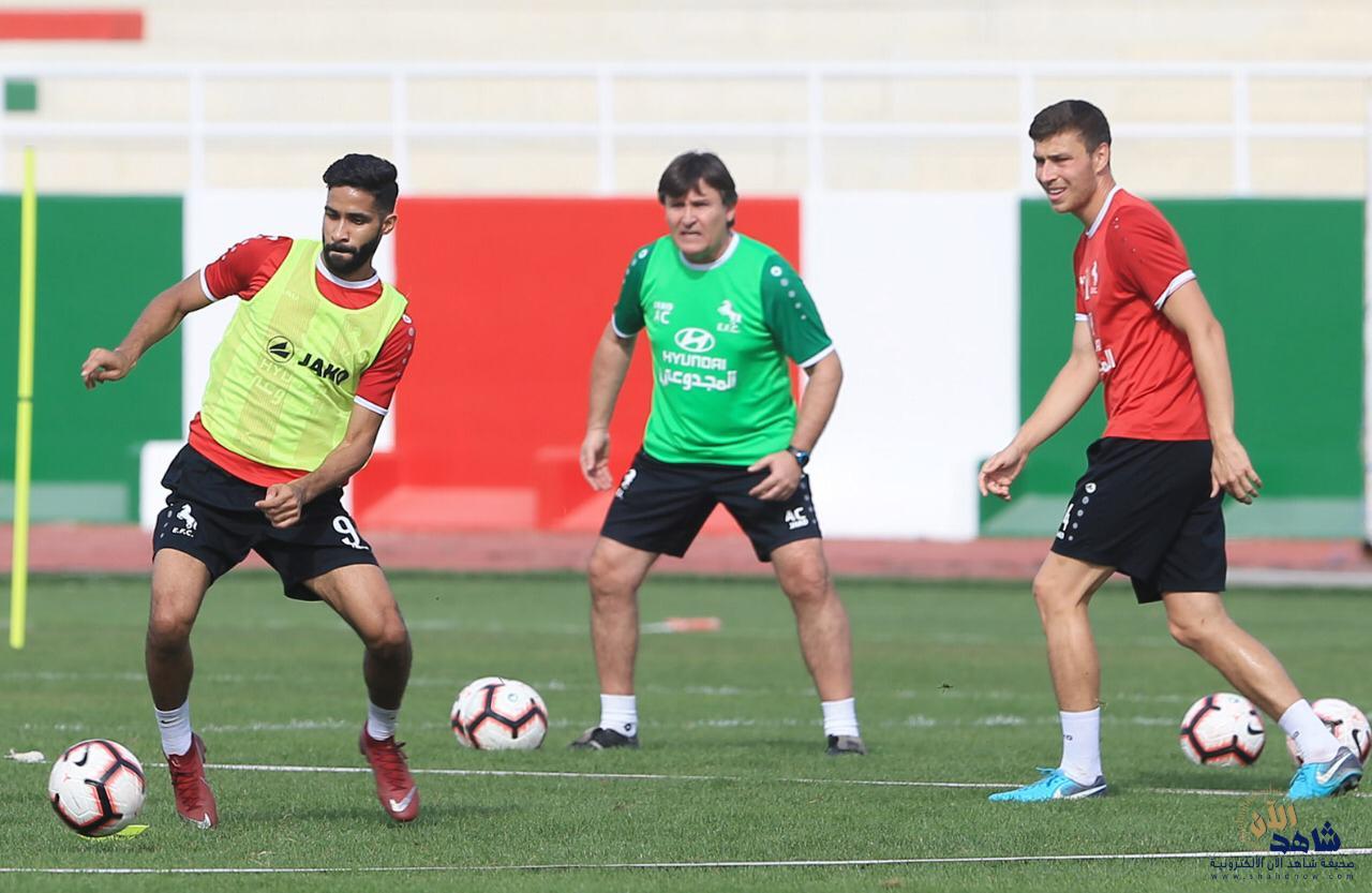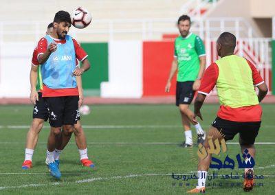 وأجرى الفريق تدريباتهع لى ملعب عبدالله الدبل بالنادي تحت إشراف مدرب الفريق الإسباني سيرخيو بيرناس الذي عمد إلى تكثيف النواحي اللياقية والتكتيكية قبل أن يختتم الحصه التدريبية بمناورة وضع من خلالها تصوراته الفنية للمباراة.